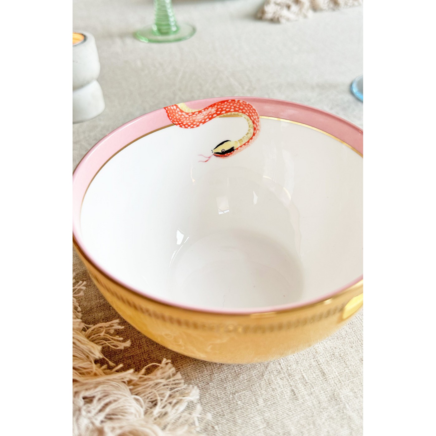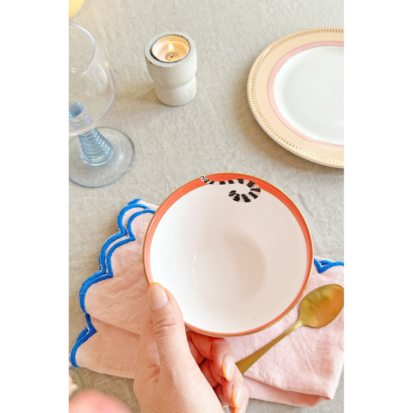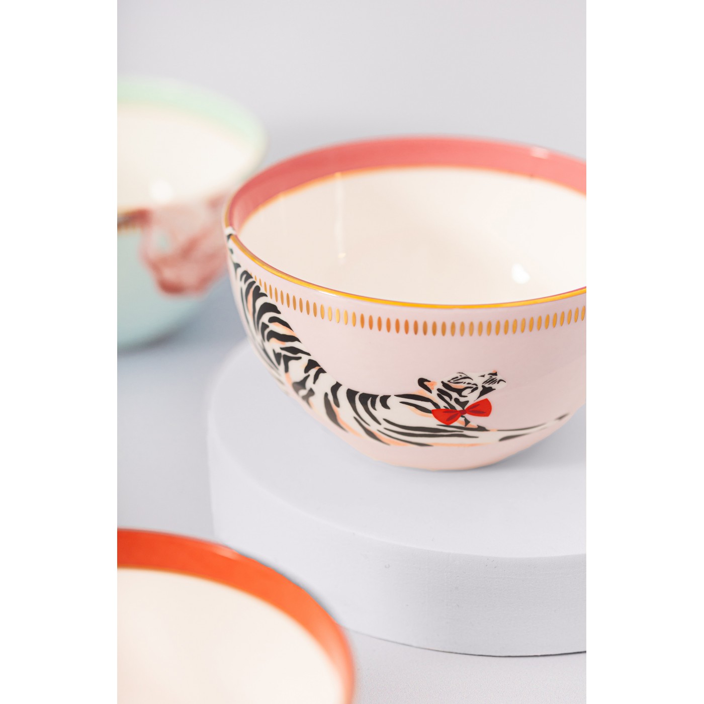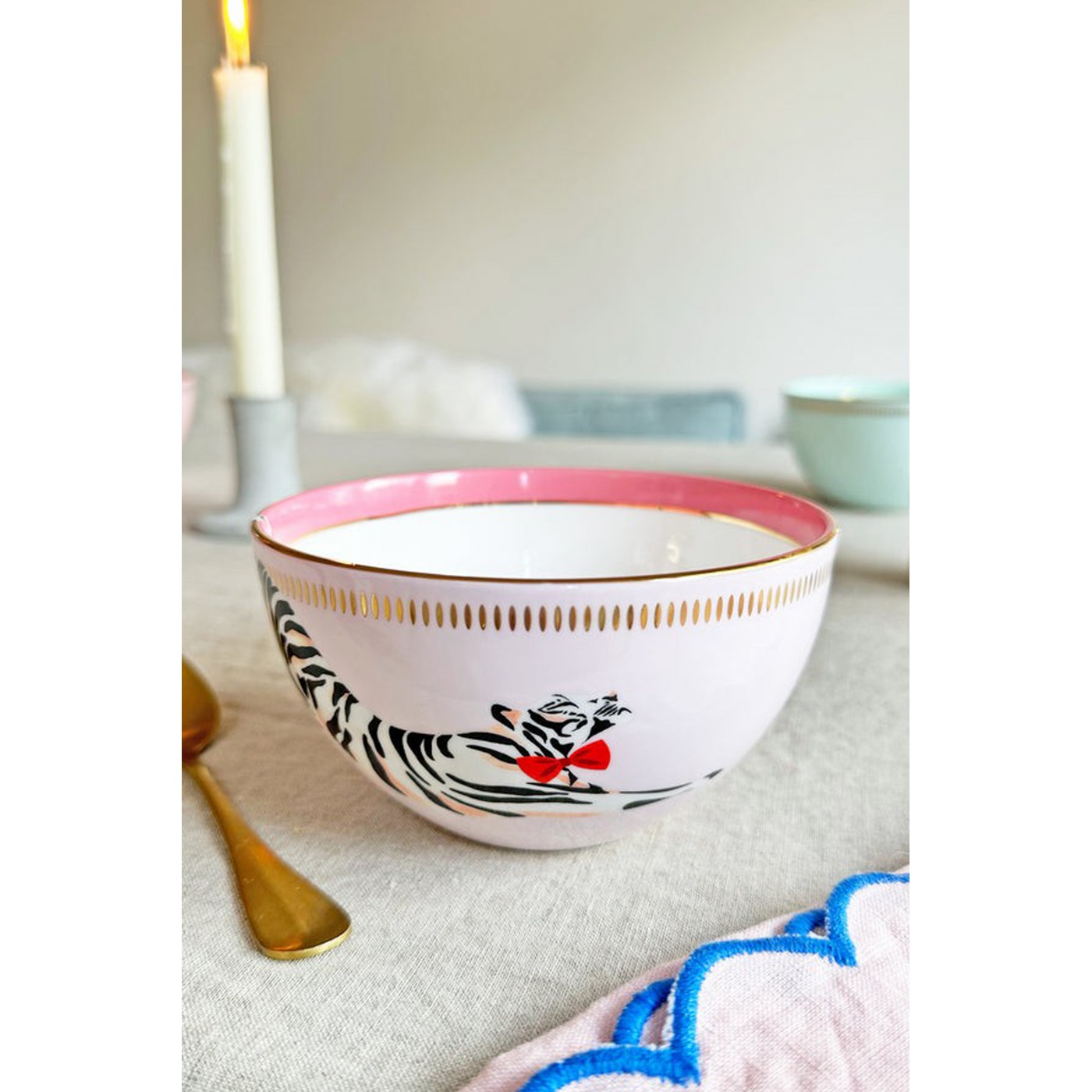 Ce set original incarne parfaitement le style Yvonne Ellen : des animaux emblématiques dans des compositions colorées et ludiques. Les bols à céréales pastel sont ornés de quatre animaux adorables, rehaussés de détails dorés qui apportent une touche funky, parfaite pour égayer vos repas.