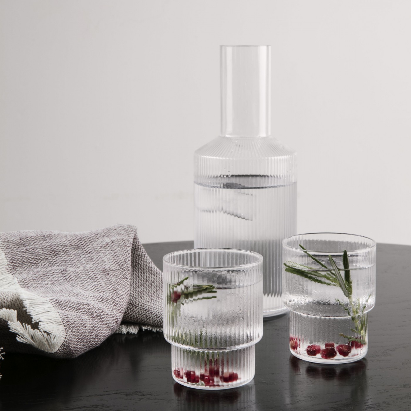 Set of 4 Clear Ripple Glasses Diam 7 x 8,8 cm, mouth blown, designed by Ferm living.