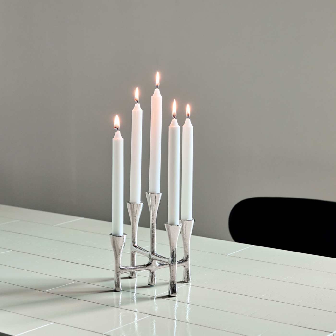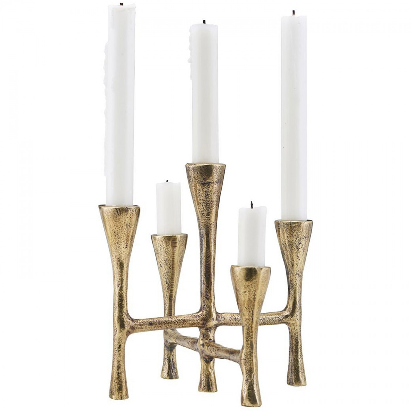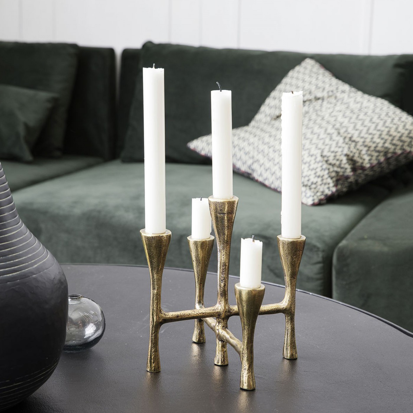 It is called Tristy and is made of aluminium with a golden brass finish. With room for 5 candles, the candle holder gets a sculptural look which makes it ideal for adorning your home.