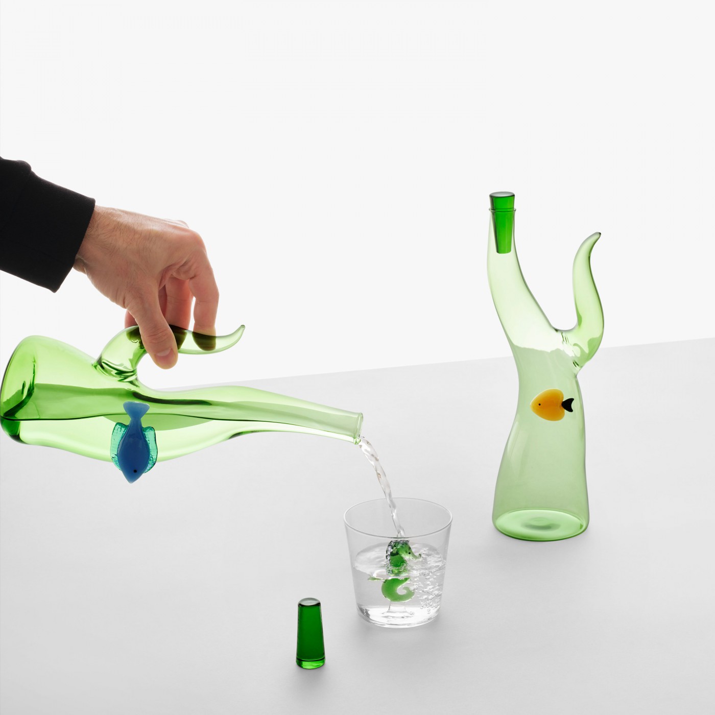 Transform your tasting moments into an artistic experience with this superb blown glass carafe. Its organic design, evoking an aquatic plant, is enhanced by a small amber fish, delicately integrated into the glass. Ideal for serving wine, water or juice with originality, this carafe combines aesthetics and functionality. Each piece, carefully crafted, is a true work of art that will bring a unique and elegant touch to your table. Offer or adopt this carafe to combine practicality and marine poetry.