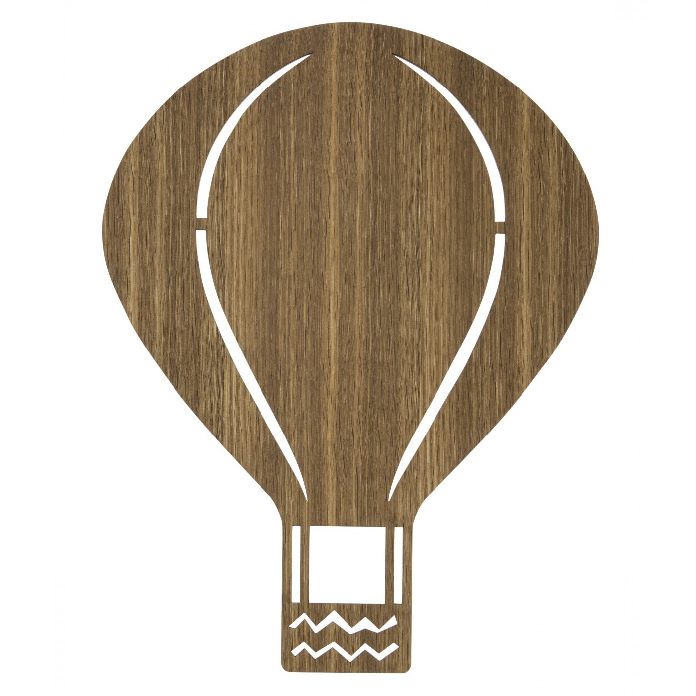 The Air Balloon Lamp is Oak wood smoked, with a transparent power cable and switch.