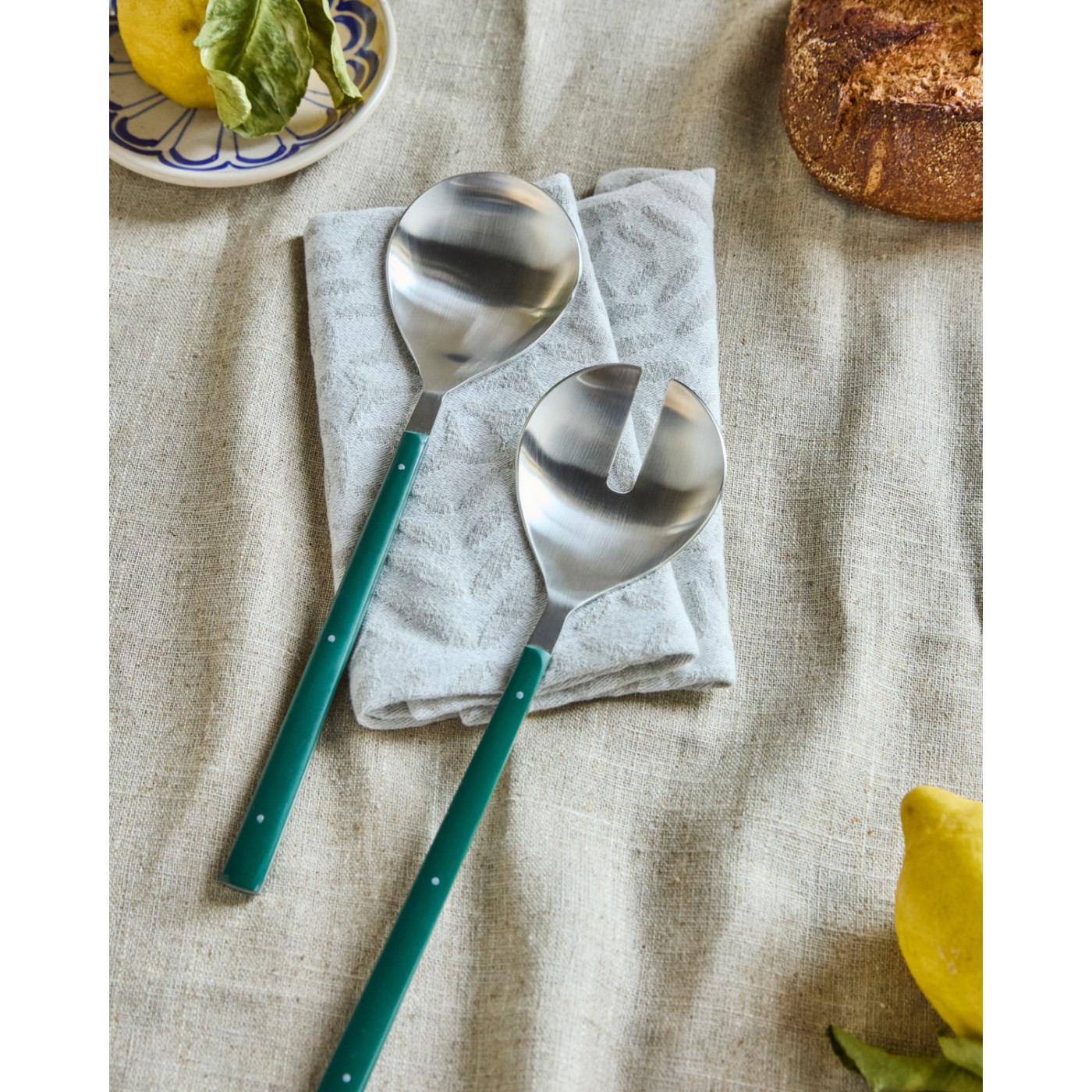 Ce duo de couverts à salade allie élégance et praticité pour sublimer votre table. En acier inoxydable poli, leurs manches vert foncé apportent un contraste raffiné et contemporain. Leur design épuré et soigné fait de chaque service un moment élégant, tout en offrant confort et fonctionnalité au quotidien.