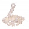 Tsé & Tsé has created 25 Paper White Cubic Lights along a wire to Delight us ....