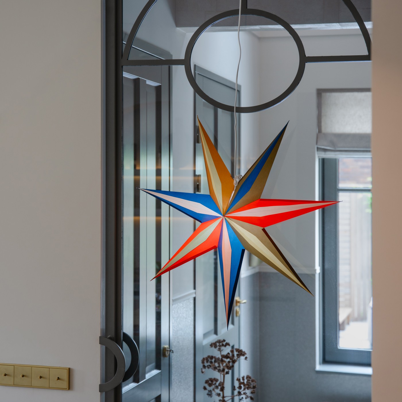 We offer you stars at your fingertips! Our brightly colored paper star Mago is the perfect decorative accessory to brighten up your windows and walls. Easy to unfold and fold, it brings a magical and festive touch in the blink of an eye. Ideal for all seasons, not just Christmas, this colorful star lights up your interior and amazes young and old alike. Add a touch of magic to your home with this decoration that shines for any occasion!