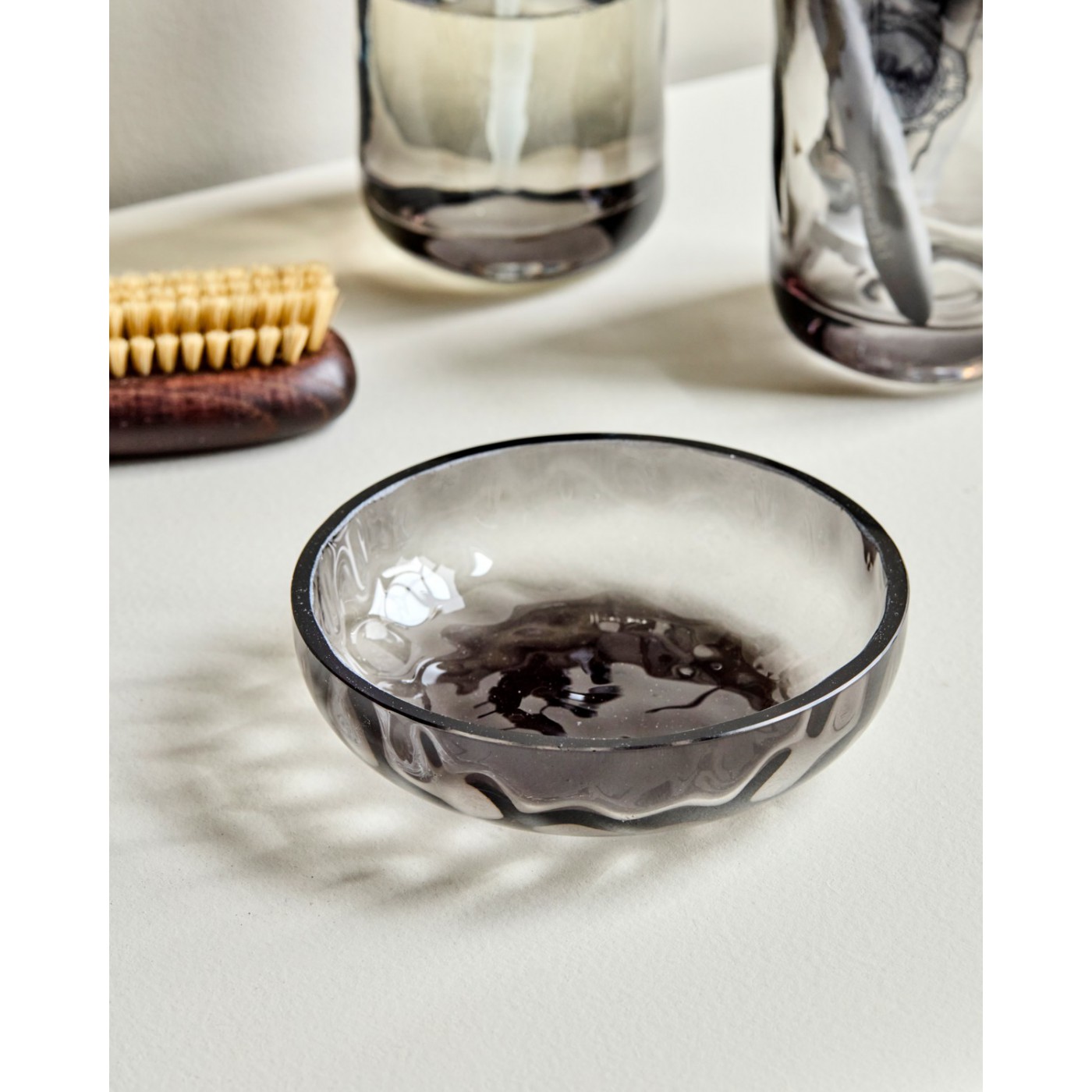 Cette coupe en verre séduit par sa forme organique et sculpturale, réalisée avec un savoir-faire artisanal. Sa teinte fumé semi-transparente et sa surface brillante captent la lumière avec élégance, offrant un écrin raffiné pour vos petits objets. À la fois fonctionnelle et décorative, elle apporte style et caractère à votre intérieur.