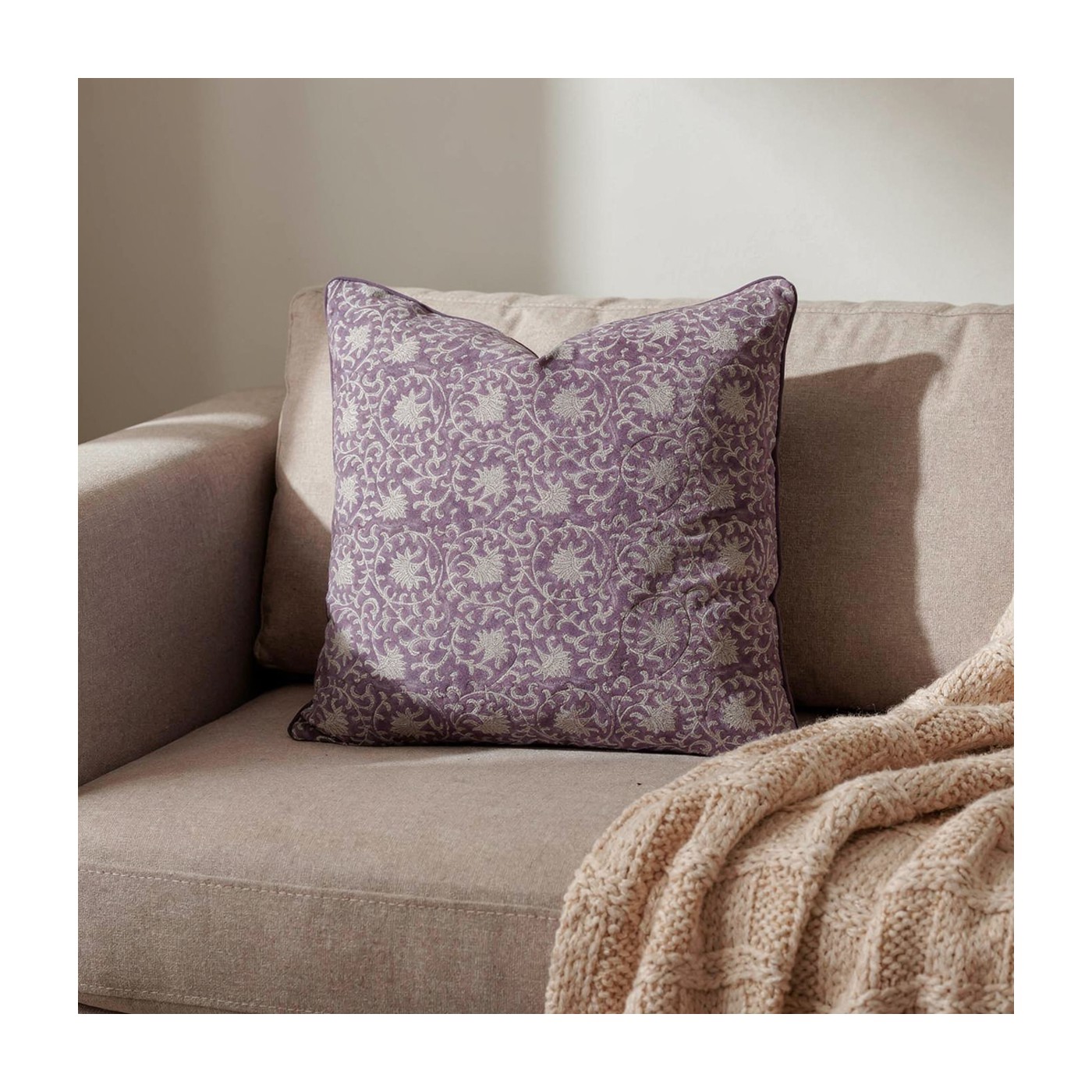La housse de coussin en coton Noura séduit par son imprimé raffiné aux motifs floraux délicats sur fond violet. Son passepoil assorti souligne ses lignes avec élégance et lui apporte une finition soignée. Douce et agréable au toucher, elle habille votre intérieur d’une note de caractère et de charme. Parfaite pour sublimer un canapé ou un lit avec style et originalité.