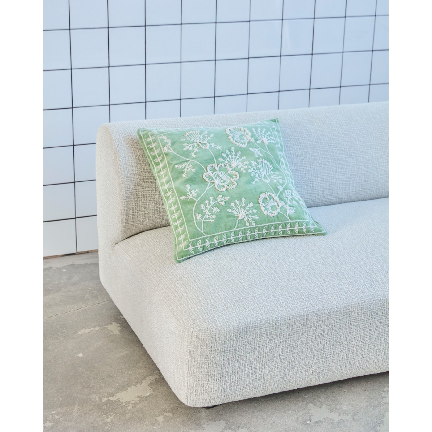 Offrez une note douce et naturelle à votre décoration avec la housse de coussin Mano. En coton doux, elle présente une broderie texturée couleur sable formant un motif botanique élégant sur un fond vert menthe. Une association apaisante qui apporte relief, raffinement et fraîcheur à votre canapé, fauteuil ou lit, tout en créant une ambiance harmonieuse dans votre intérieur.