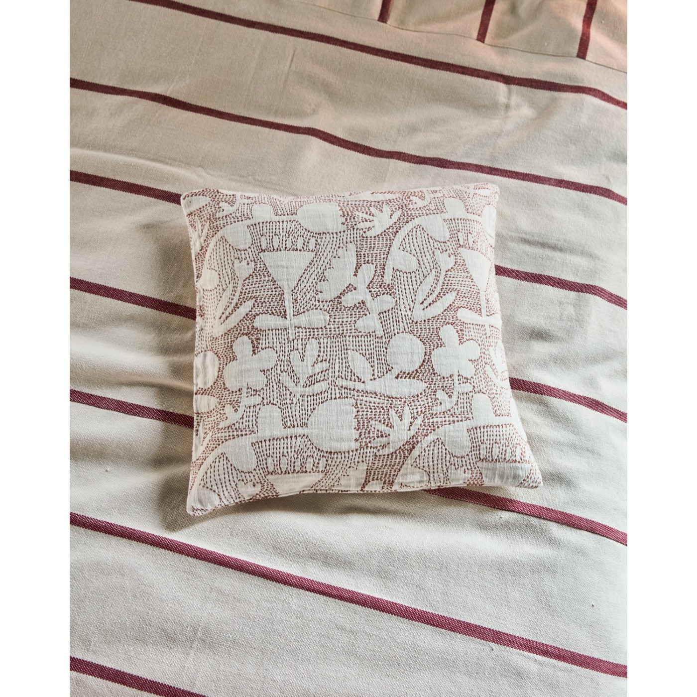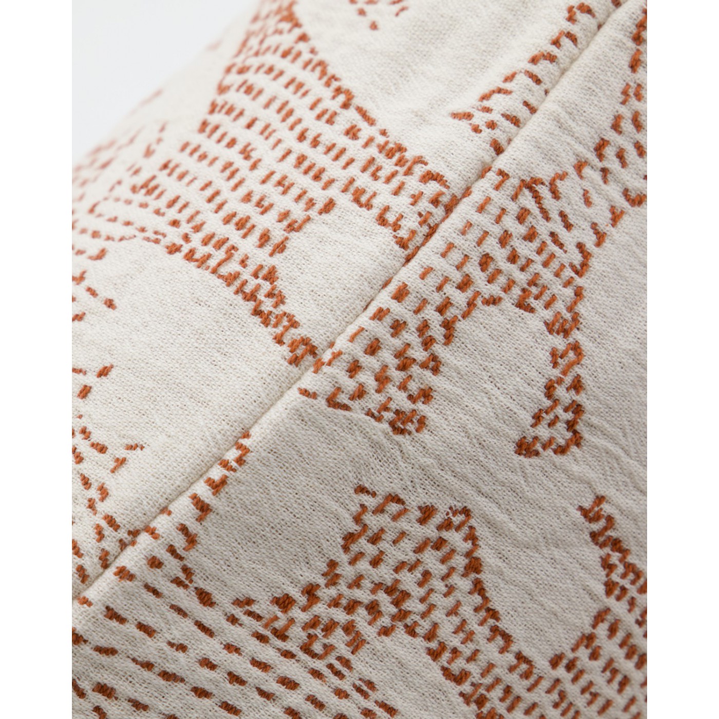 Cette housse de coussin en coton doux apporte style et caractère à votre canapé. Ses fines broderies blanc cassé dessinent un motif délicat sur un fond brun texturé, tandis que les coutures soignées soulignent son aspect artisanal. Élégante et décontractée, elle crée une atmosphère chaleureuse et personnelle dans votre intérieur.