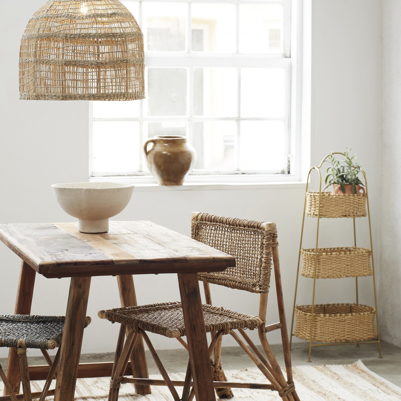 The standing basket rack is edited by the Madam Stoltz brand with a design inspired by nature and Indian artisanal and local traditions