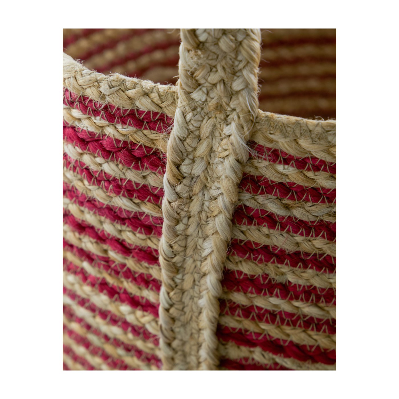 Améliorez votre espace avec ces paniers en jute faits à la main, parfaits pour ajouter une touche d'élégance naturelle à n'importe quelle pièce. Leur design avec des rayures vives et leurs poignées tressées pratiques offrent à la fois style et fonctionnalité. Idéaux pour organiser le linge, les jouets ou d'autres objets ménagers, ces paniers se déclinent en trois tailles et couleurs différentes pour s'adapter à vos besoins. Apportez une touche de fraîcheur et d'ordre à votre intérieur avec ces paniers polyvalents en jute.