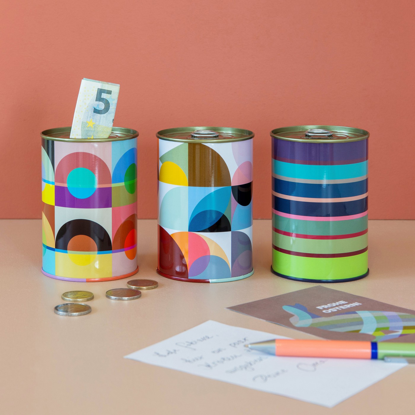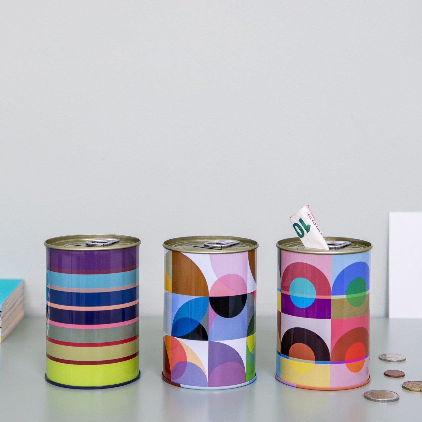 Our colorful Bella piggy bank is just waiting to be filled. To collect the money, simply open the lid like a tin can.