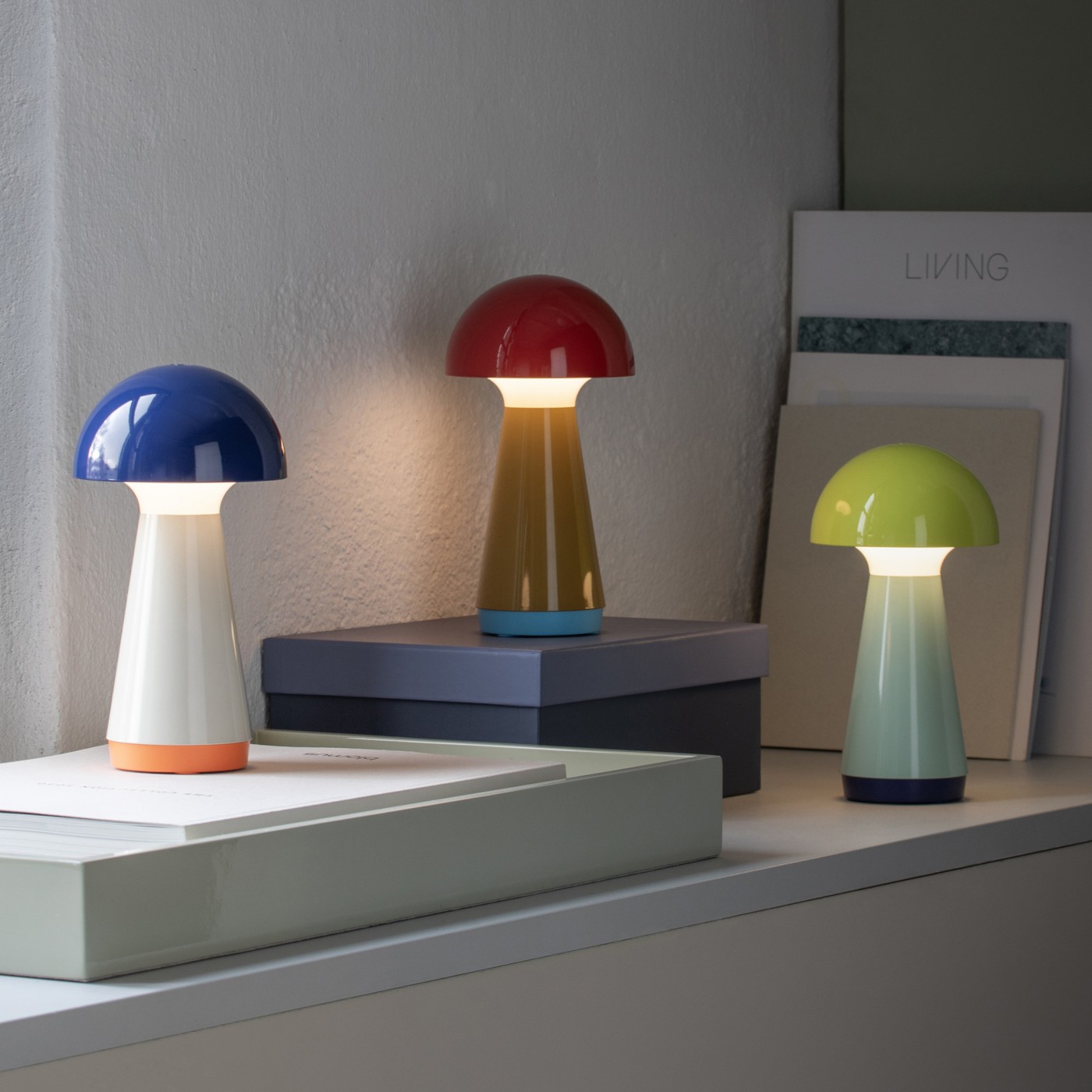 The Bobbi lamp does not need a nearby power outlet for its installation, and can therefore be quickly transported wherever ambient light is needed. Whether on the living room coffee table, the kitchen windowsill or the hallway console, when charged it shines for up to 46 hours.