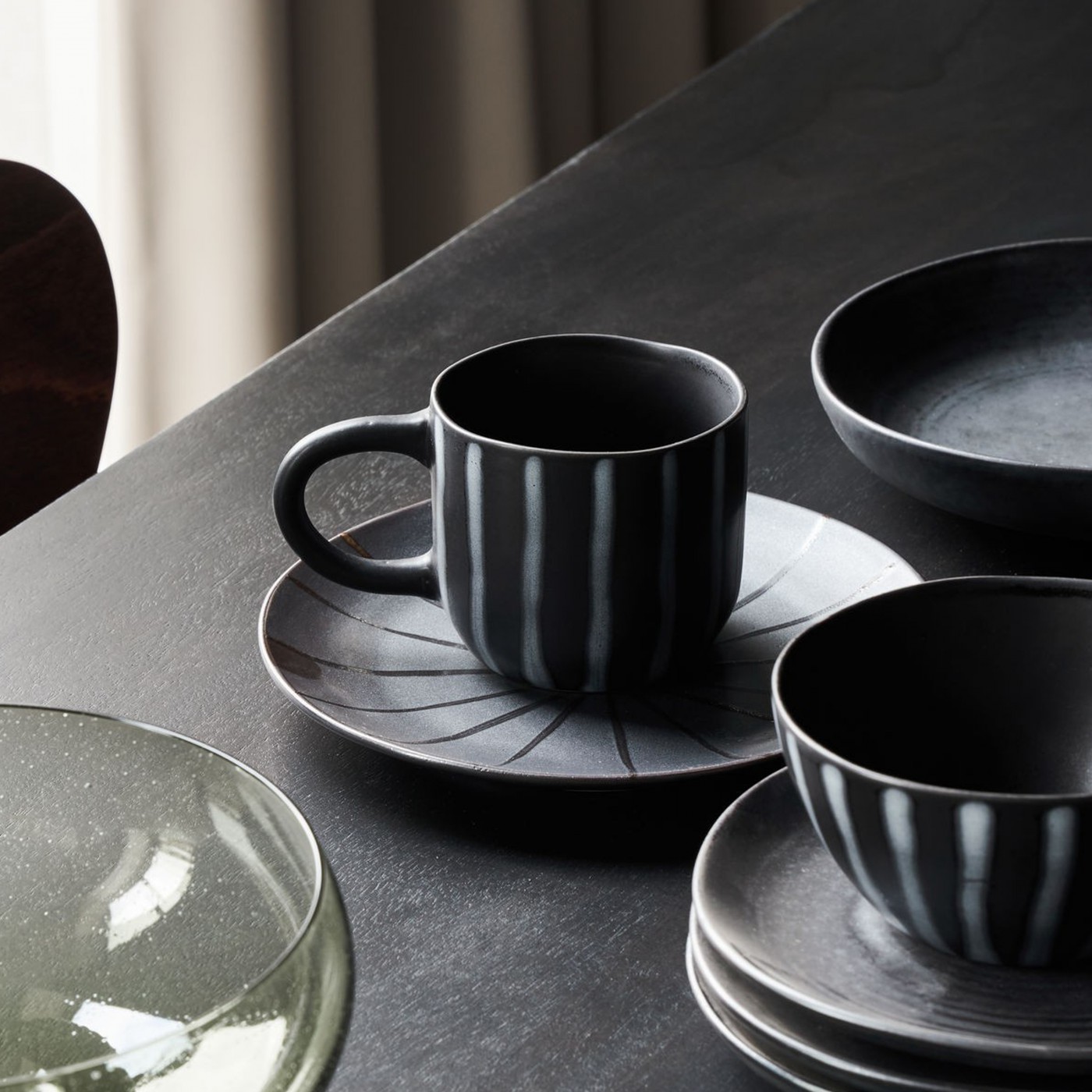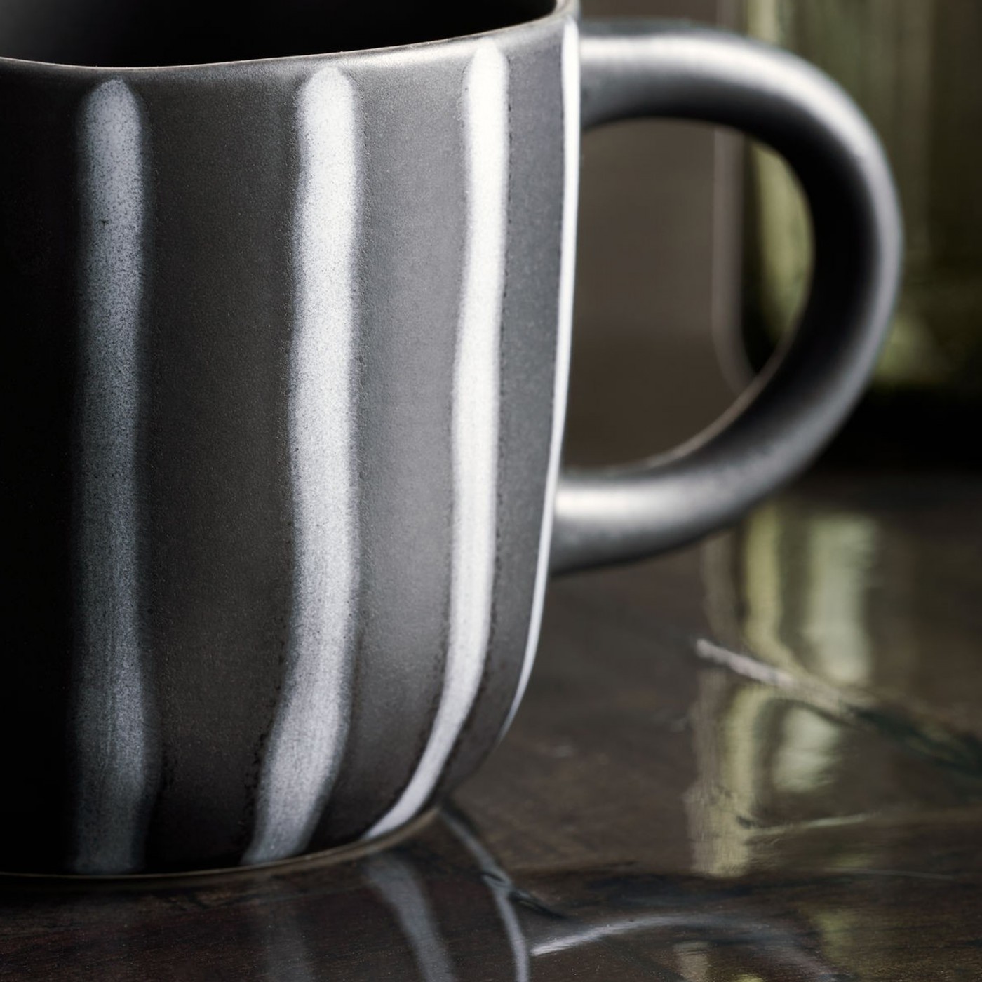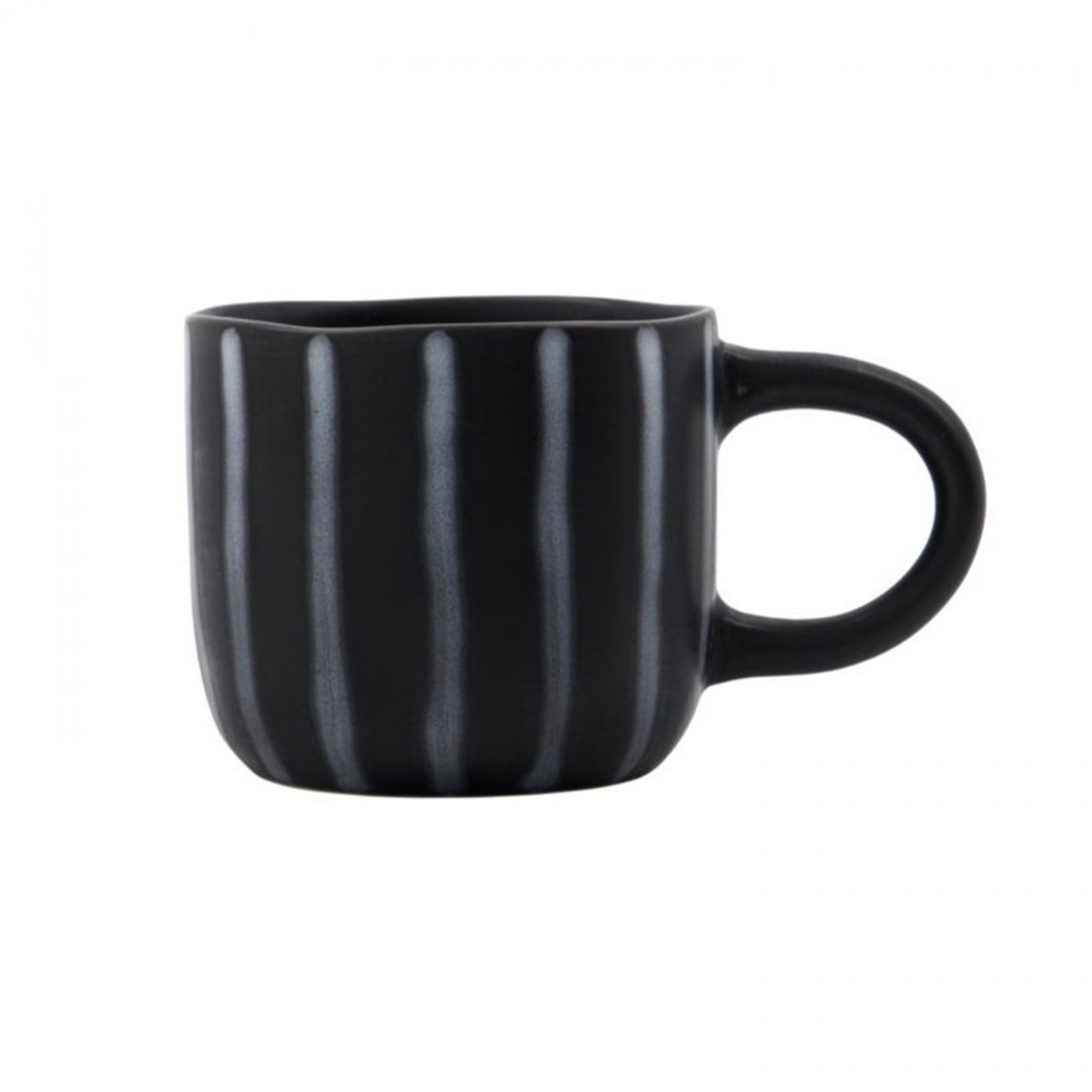 This black stoneware mug features stripes, offering a personal and unique touch to your interior.