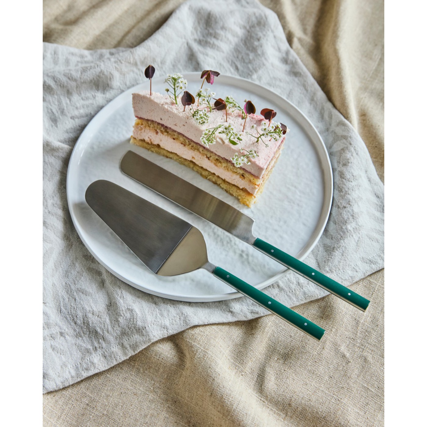 Le set Lata apporte élégance et style au service de vos gâteaux. Composé d’une pelle et d’un couteau en acier inoxydable poli, il se distingue par ses manches vert foncé raffinés. Parfait pour sublimer un anniversaire ou une pause-café improvisée, il allie fonctionnalité et esthétisme, transformant chaque moment gourmand en une présentation soignée et sophistiquée.