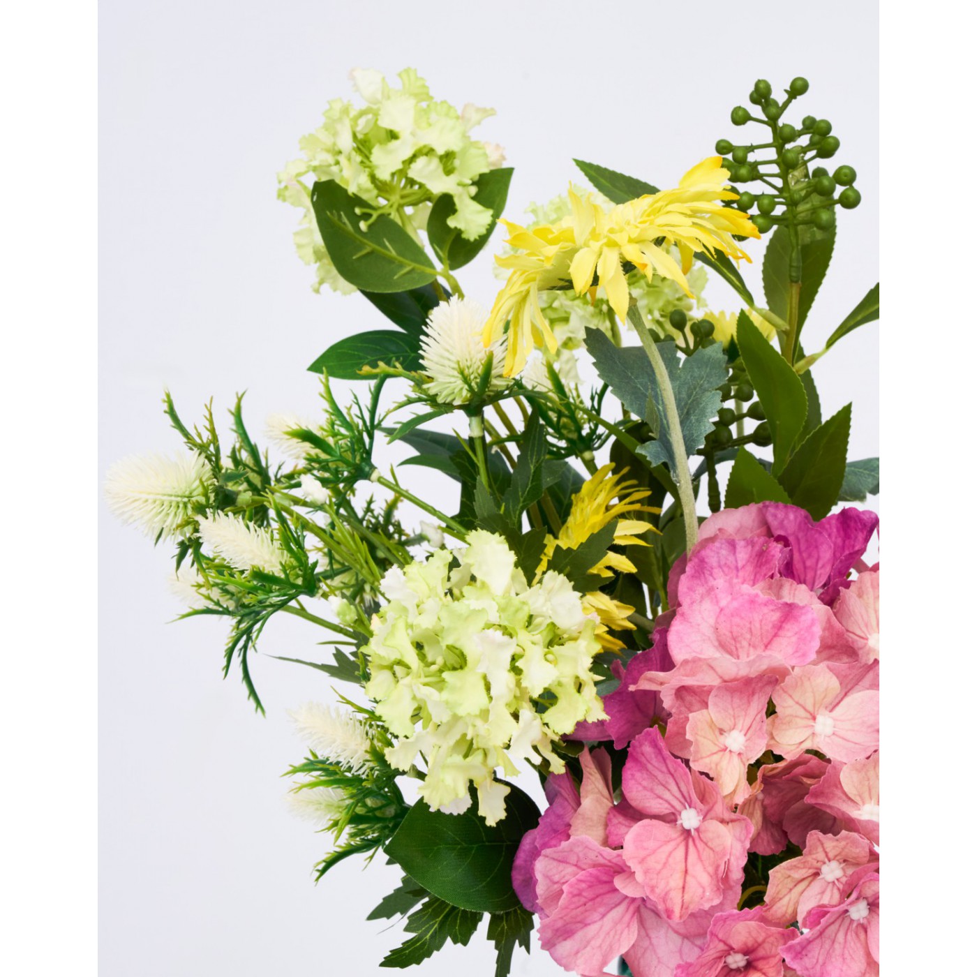 Ce bouquet de fleurs artificielles séduit par son assemblage de tiges variées et ses textures soignées au rendu très naturel. Les couleurs lumineuses se mêlent avec harmonie pour créer une composition décorative pleine de fraîcheur, idéale sur une table ou dans une entrée. Un objet décoratif durable qui conserve son éclat au fil du temps, sans entretien.