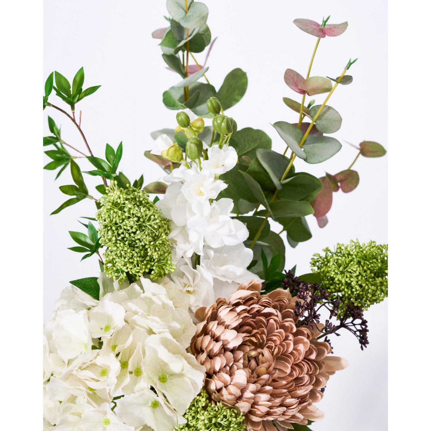 Le bouquet Wild Cream instaure une ambiance douce et naturelle dans votre intérieur. L’association de fleurs aux teintes crème et d’un feuillage vert crée une composition dense au rendu très réaliste. Les nuances délicates conservent leur éclat au fil des saisons, offrant une présence décorative durable et harmonieuse, sans contrainte d’entretien. Idéal pour sublimer une pièce avec sobriété et élégance.