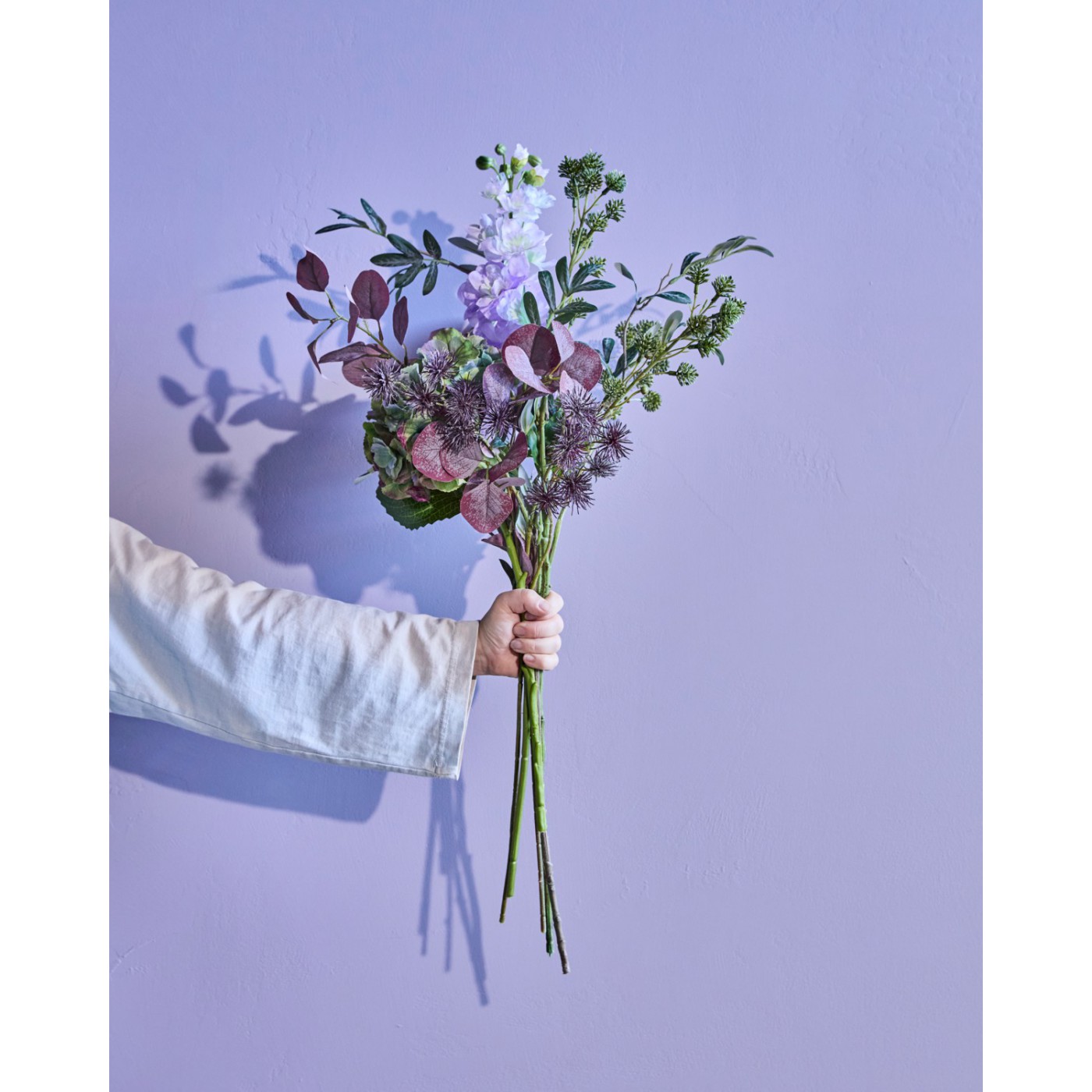 Ce bouquet de fleurs artificielles associe de délicates fleurs violettes à un feuillage vert pour une composition élégante et équilibrée. Les tons sourds et les textures finement travaillées créent un rendu très réaliste, parfait pour apporter une note végétale à votre intérieur. Une décoration florale durable qui conserve son allure au fil des saisons, sans entretien.