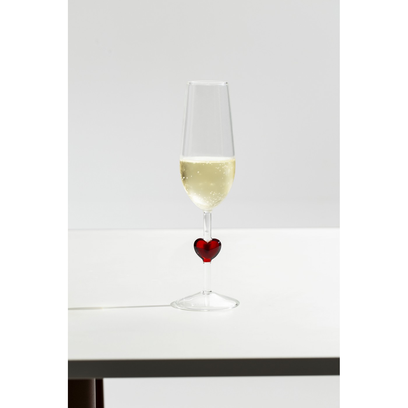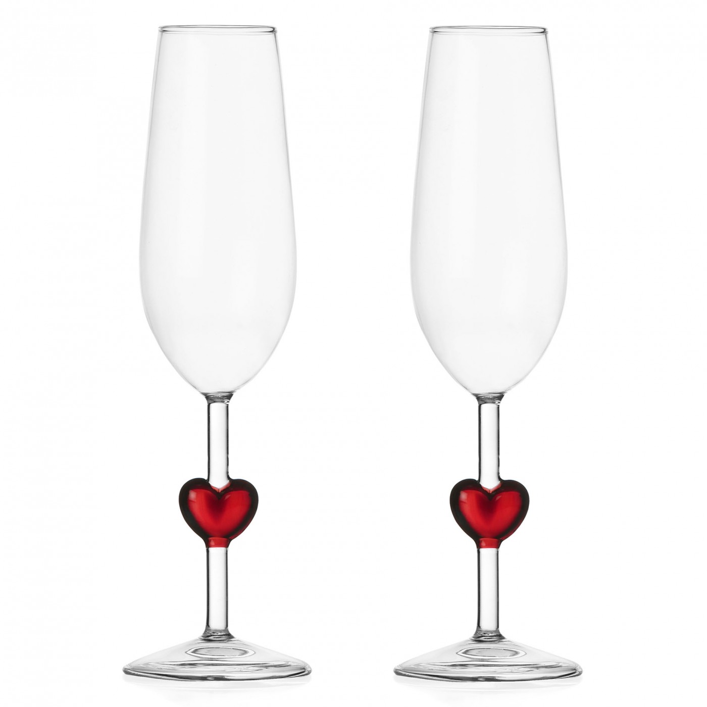 Ce lot de 2 flûtes en verre transparent signé Ichendorf Milano séduit par son équilibre entre finesse et émotion. Chaque flûte est rehaussée d’un cœur rouge délicatement posé sur le pied, détail graphique qui attire le regard tout en restant subtil. La transparence du verre met en valeur la pureté des lignes et la légèreté de la silhouette. Pensées pour accompagner les moments de célébration, ces flûtes associent élégance, poésie et savoir-faire verrier dans un esprit résolument contemporain.