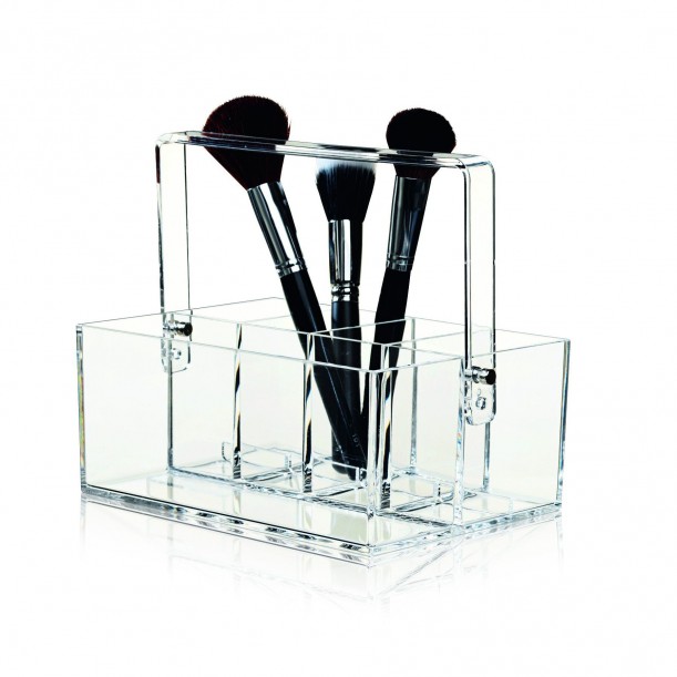 Organiseur transportable de 20,5 x 15 x h 19,5 cm avec 5 compartiments 4 petits et 1 grand parfaitement adapté pour la salle de bain ou le bureau, pinceaux, crayons etc