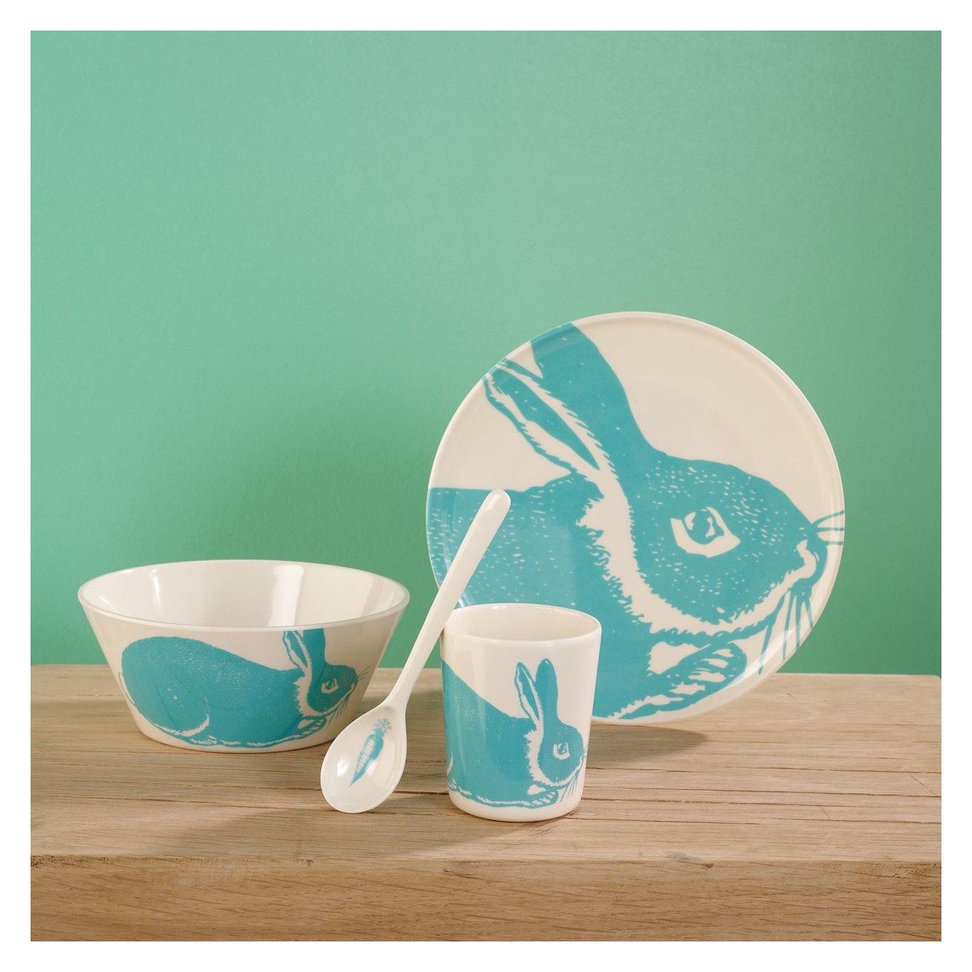 Un Joli Set Lapin avec un Bol une Assiette une Timbale et une Cuillère ... Tout ce qu'il faut.