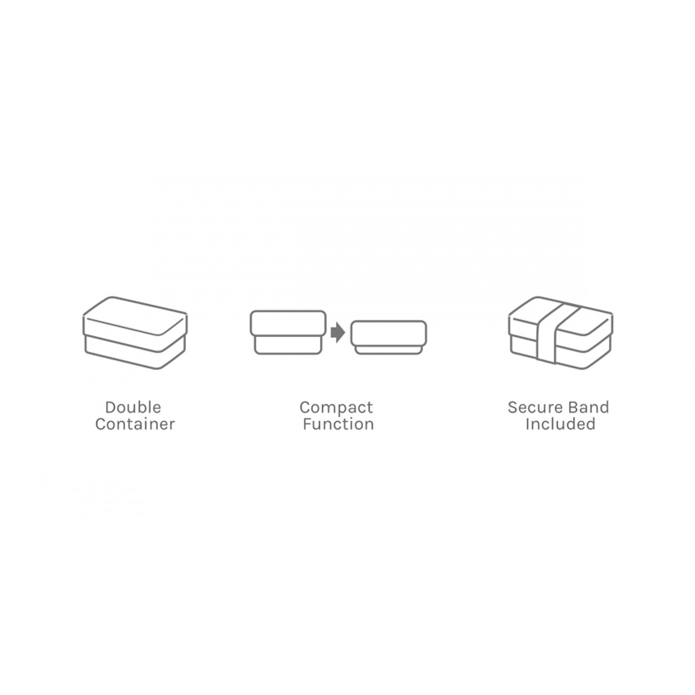 Pratique, La Bento Box Rectangle comporte plusieurs niveaux dont un étanche qui se retourne une fois le repas terminé pour prendre moins de place.