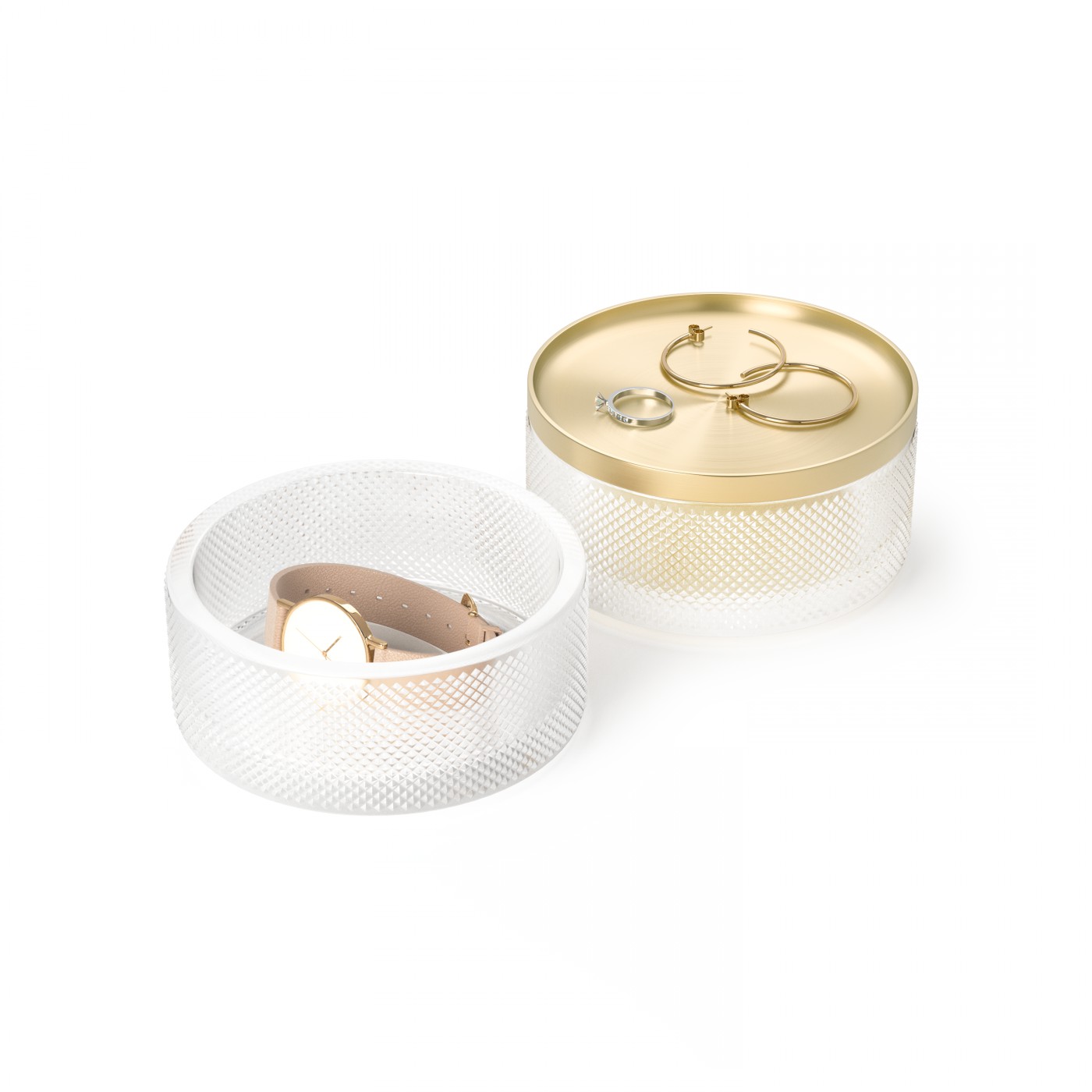 Découvrez notre Boîte à Bijoux Tesora, une pièce d'exception à deux niveaux, offrant une solution parfaite pour ranger et organiser votre collection d'accessoires. La boîte à bijoux Tesora se distingue par son couvercle en métal plaqué, pouvant servir de plateau pour exposer vos accessoires de manière élégante. Elle offre une solution de stockage polyvalente, que vous pouvez empiler pour optimiser l'espace ou utiliser séparément selon vos besoins. Sa taille parfaite la rend idéale à placer sur votre table de chevet pour un accès facile, assurant ainsi que vos bijoux restent à portée de main.