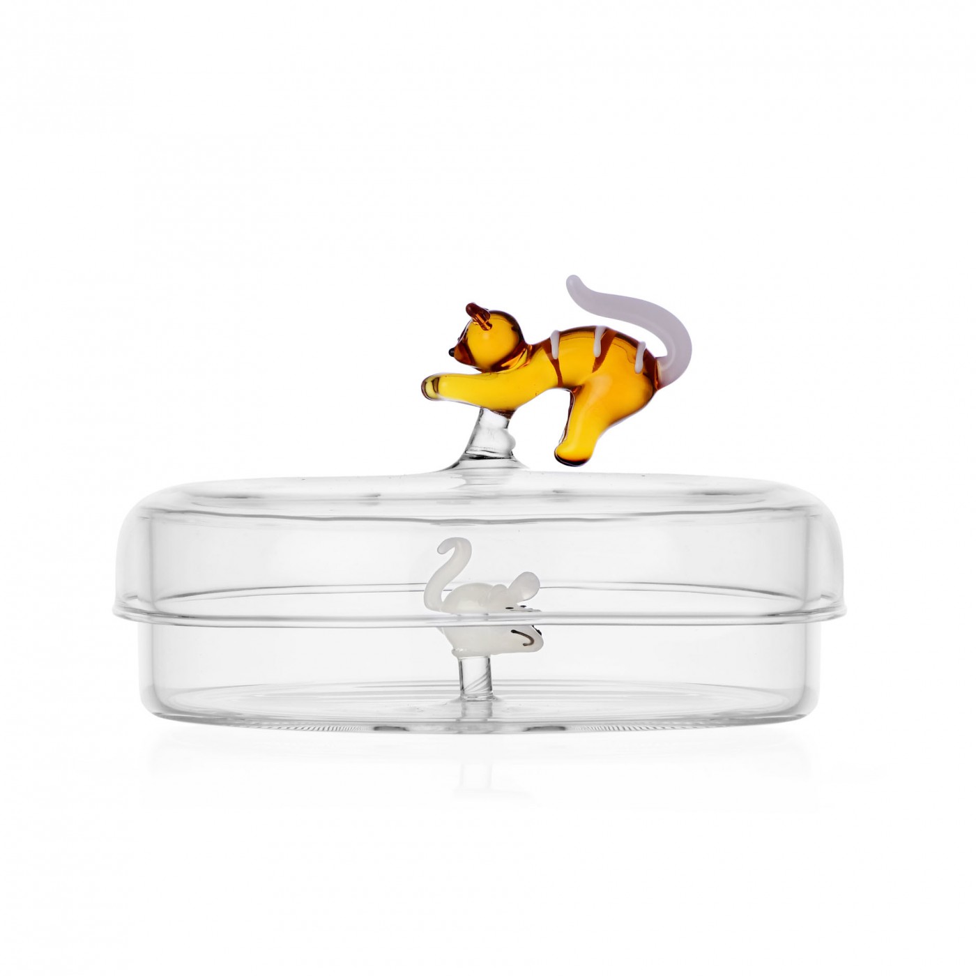 Plongez dans un univers à la fois ludique et raffiné avec la Boite Chat Tabby cat, issue de la collection Tabby cat signée Ichendorf Milano. Entièrement façonnée à la main, elle révèle en son cœur une délicate figurine en verre représentant une souris, ajoutant une touche de poésie et de fantaisie à vos instants du quotidien. Alliant transparence et subtilité des détails, cette collection rend hommage à l’amour des animaux avec élégance. Parfaite pour les amateurs de design et de compagnons à quatre pattes, Tabby cat transforme chaque objet en une pièce singulière et pleine de personnalité.