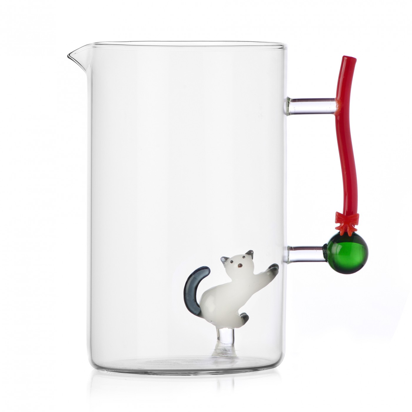 Plongez dans un univers ludique et raffiné avec la carafe Chat et balle de la collection Tabby Cat signée Ichendorf Milano. Entièrement soufflée à la main, elle révèle une figurine délicate en verre représentant un chat, ajoutant poésie et fantaisie à vos dégustations. Alliant transparence et finesse des détails, Tabby Cat célèbre l’amour des animaux et transforme chaque service en moment singulier.