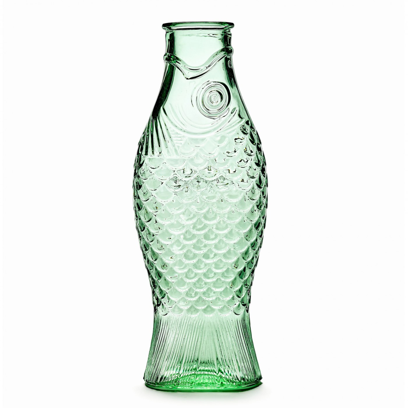 La carafe Fish est une pièce à la fois fonctionnelle et décorative qui affirme le style de votre table. Imaginée par Paola Navone pour Serax, au sein de la collection Fish & Fish, elle séduit par sa silhouette en forme de poisson, pleine de caractère et d’élégance. En verre vert délicatement teinté, elle accueille eau, jus ou vin, et se détourne aussi en vase pour une composition originale.