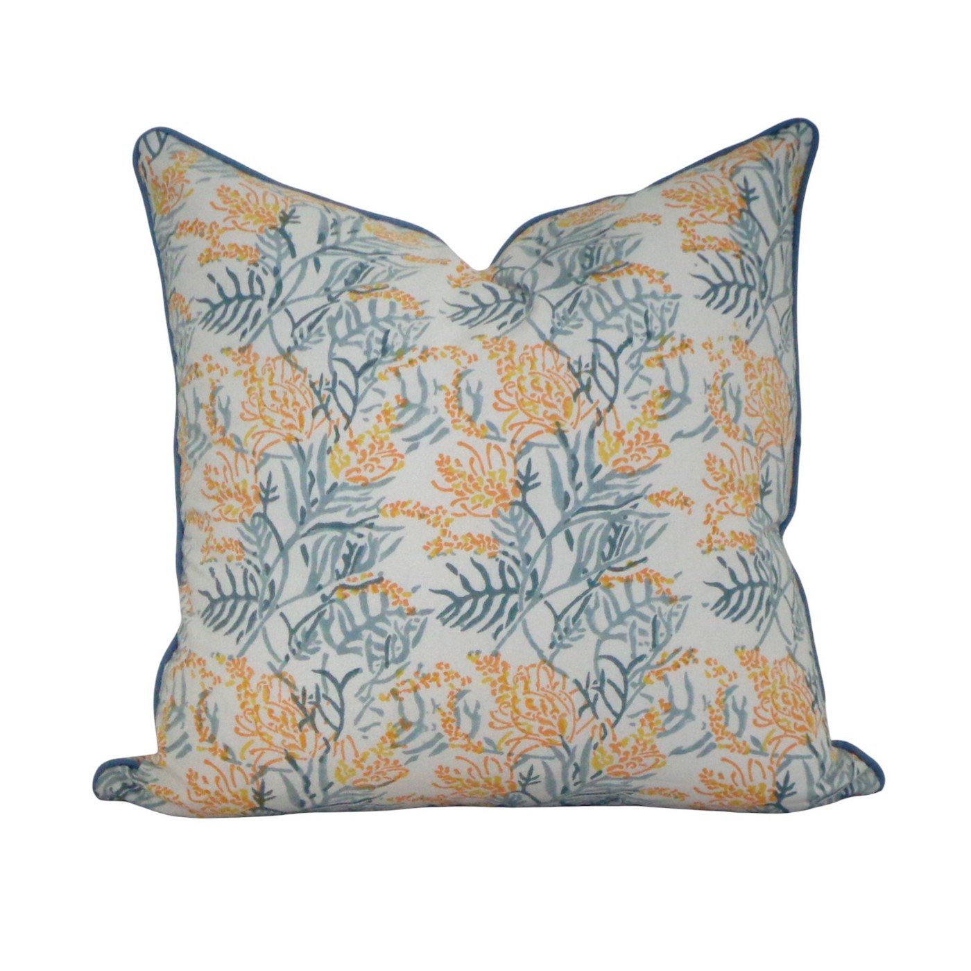 La housse de coussin Lilas Amber de chez ARCHIV Collection séduit par son imprimé floral lumineux, mêlant des nuances de jaune doré et de vert doux sur un fond clair. Réalisée en coton, elle offre une texture naturelle et agréable au toucher.