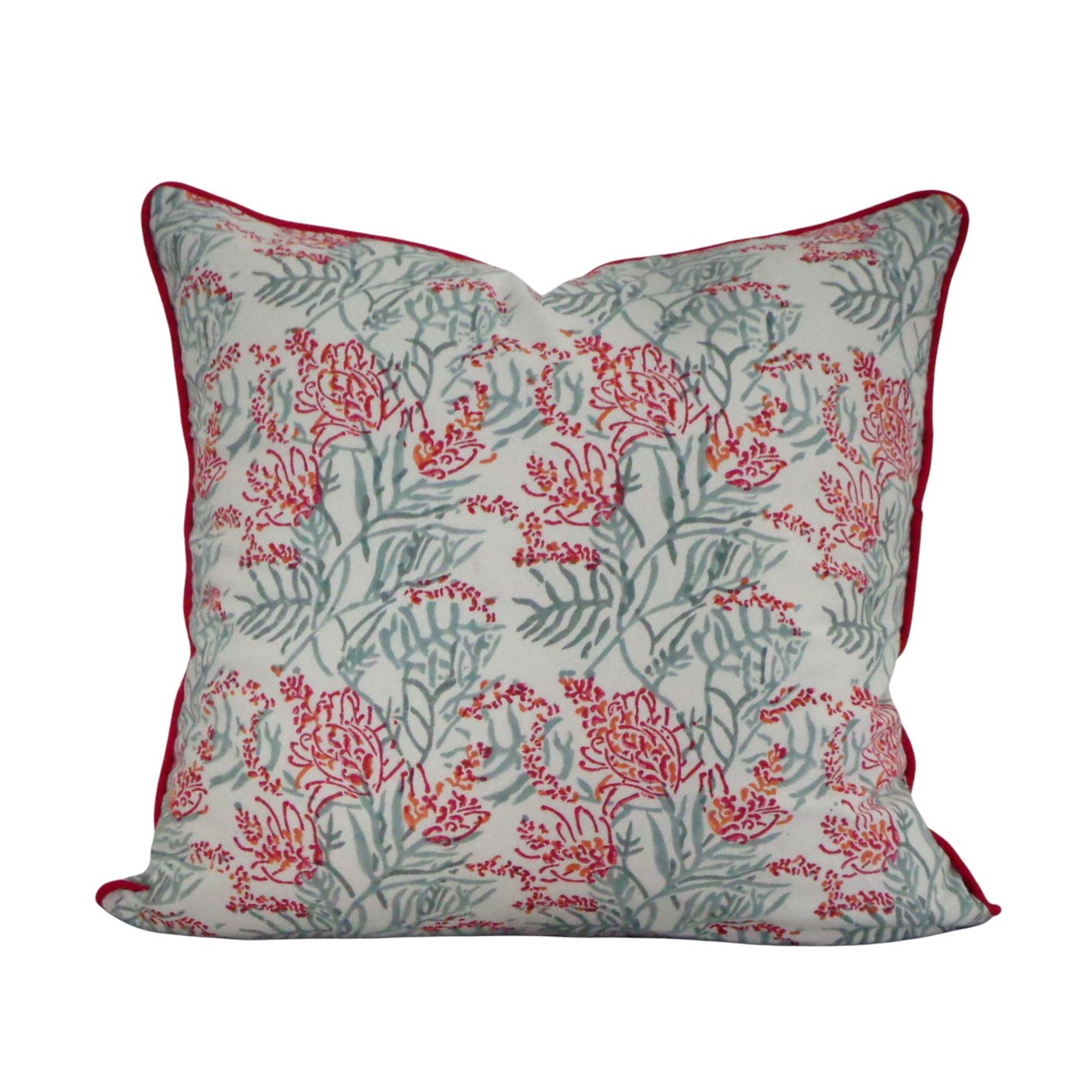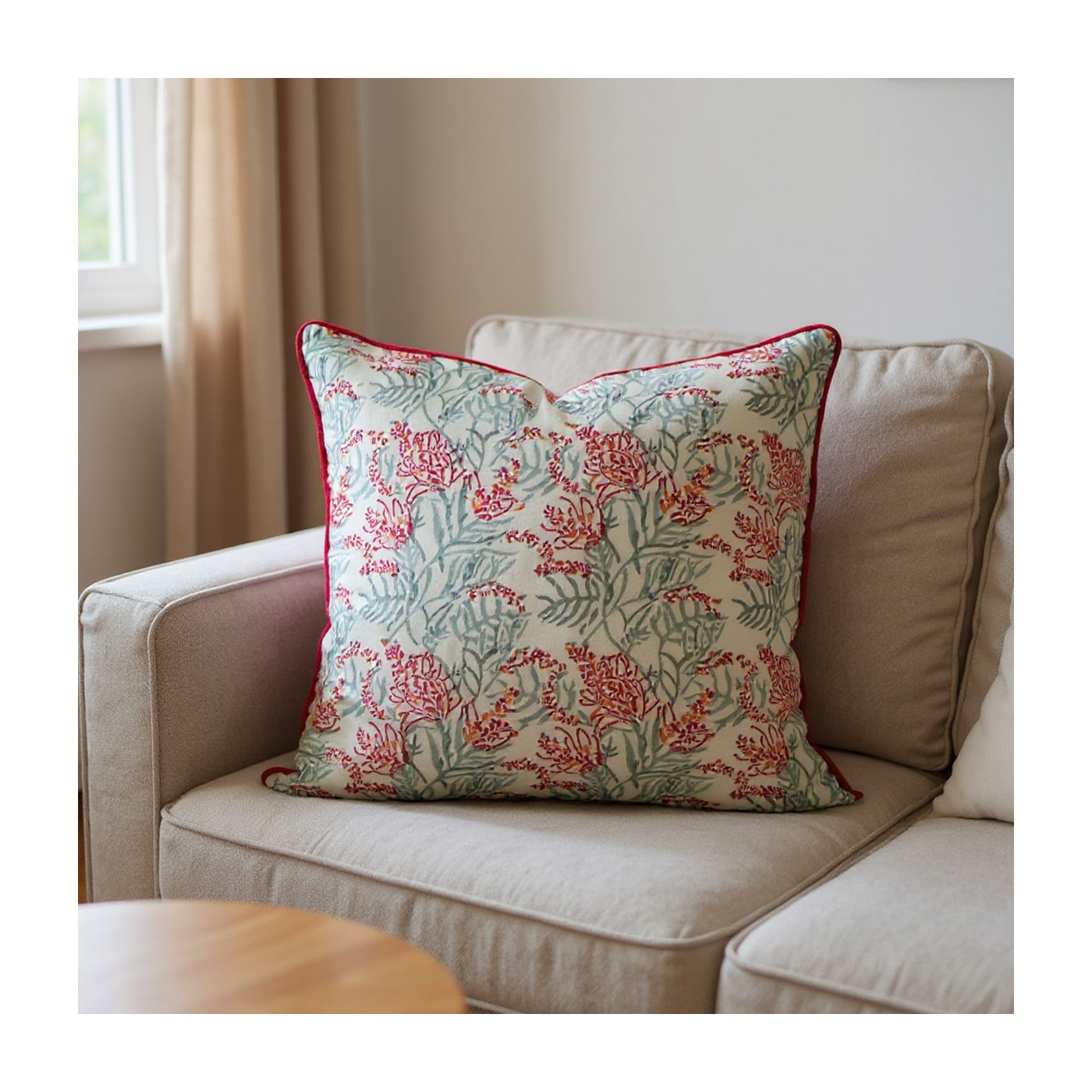 La housse de coussin Tango Lily de chez ARCHIV Collection charme par son imprimé floral délicat, mêlant des nuances de vert doux et de rouge orangé sur un fond clair. Confectionnée en coton, elle offre une texture naturelle et agréable au toucher.