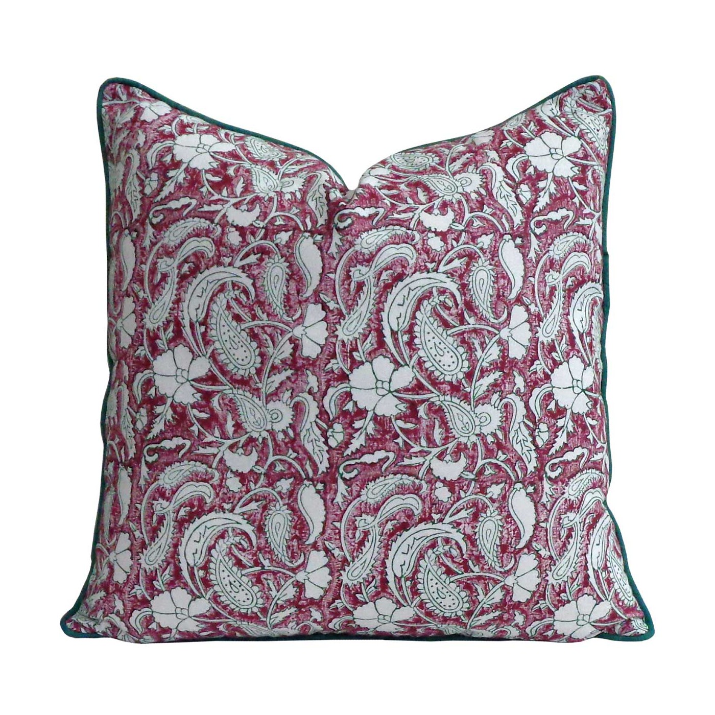 La housse de coussin Paisley de chez ARCHIV Collection se distingue par un fond bordeaux profond, généreusement habillé de motifs floraux blancs raffinés, le tout rehaussé d’un élégant passepoil vert foncé. Son tissu en coton allie douceur et tenue, enrichissant canapé ou lit d’un style audacieux et raffiné.