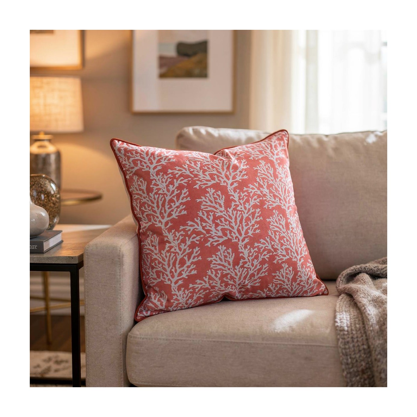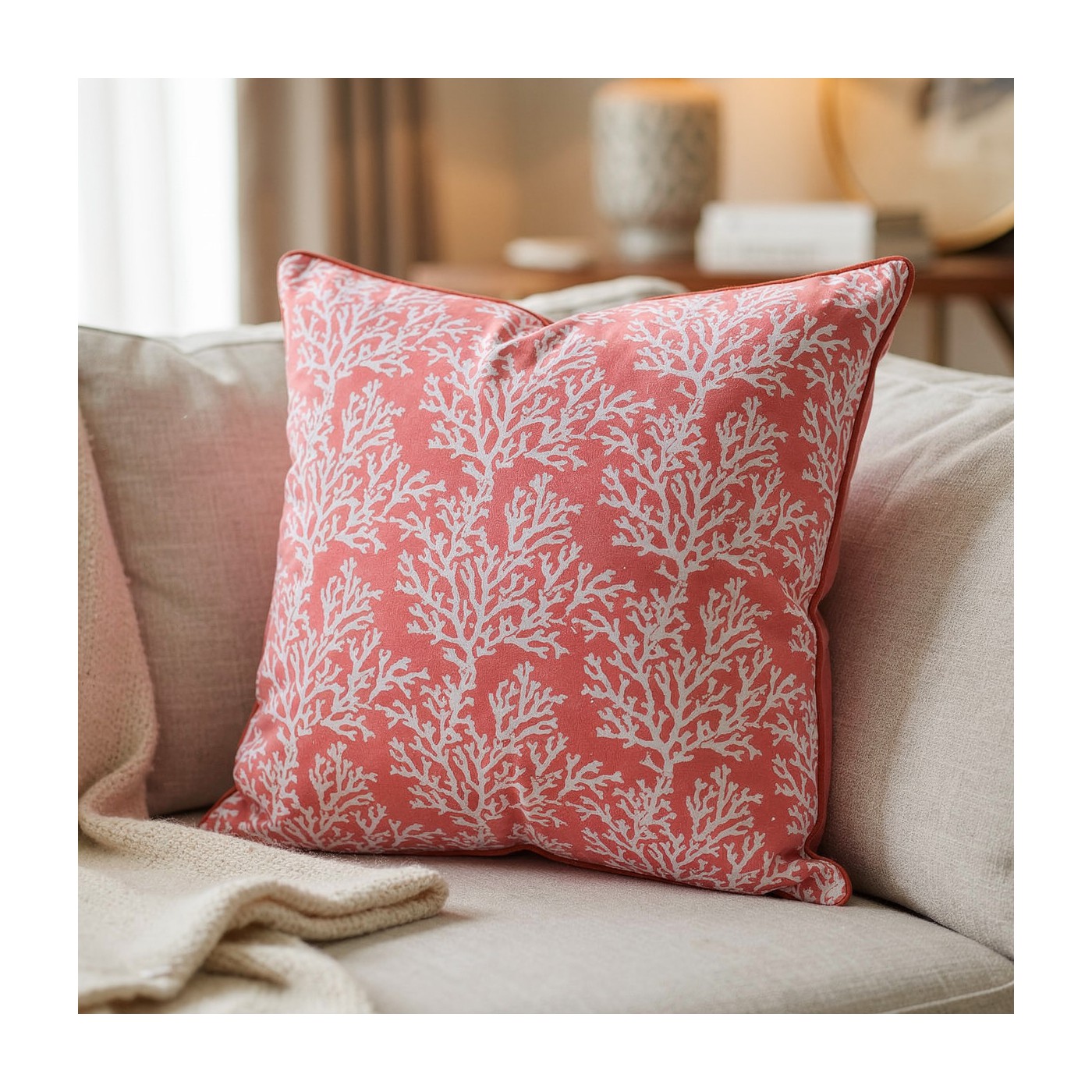 Apportez une note graphique à votre intérieur avec cette housse de coussin en coton au motif imprimé Corali rouge et blanc. Conçue avec une fermeture zip pratique et un passepoil délicat, elle allie confort et finition soignée pour sublimer canapé, fauteuil ou lit.
