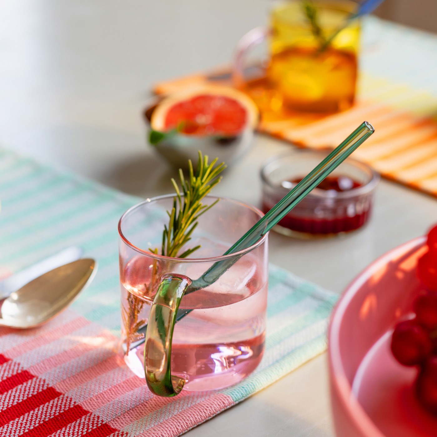 Apportez une touche de fraîcheur et d’élégance à votre table avec le set de 2 verres Fred. Leurs teintes vibrantes, associées à un design épuré, créent un jeu de lumière raffiné. Idéals pour toutes vos boissons, du café glacé aux cocktails, ils allient style et praticité.