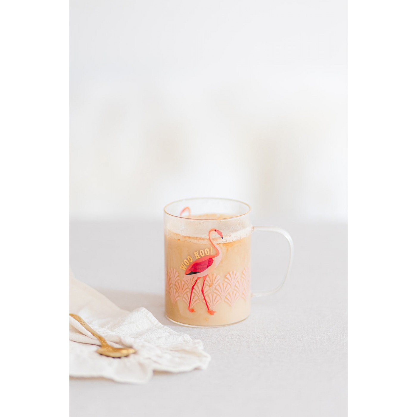 Apportez une touche d’élégance à votre pause café avec cette tasse en verre borosilicaté, résistante et transparente. Son design met en valeur un flamant rose raffiné, rehaussé de détails dorés.