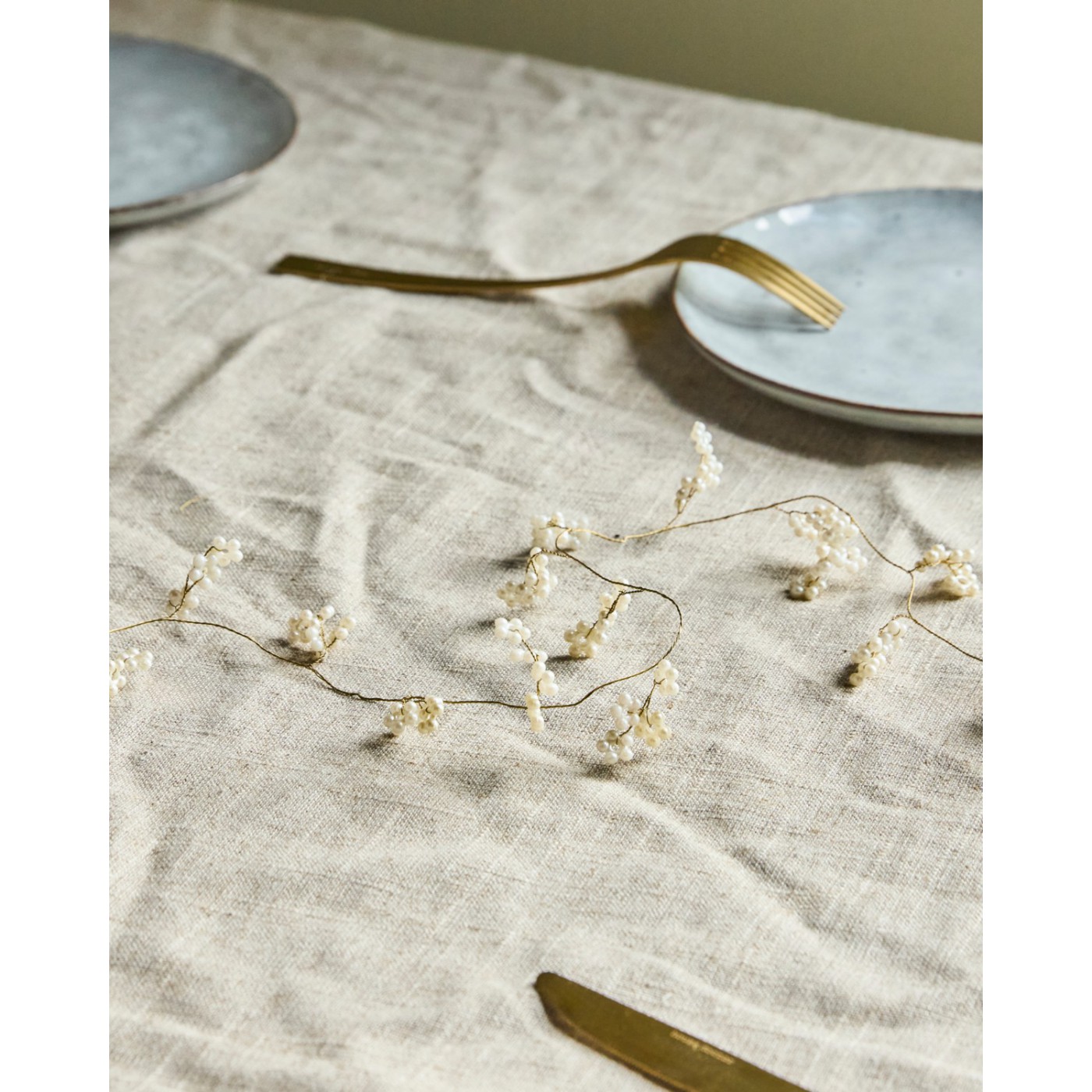 Apportez une touche raffinée à votre décoration avec cette guirlande élégante. Composée d’un fil métallique doré et d’éléments regroupés blanc cassé, elle diffuse subtilement la lumière et crée un effet délicat. Parfaite pour habiller un mur, encadrer un miroir ou compléter une mise en scène décorative, elle apporte sophistication et charme tout en insufflant une note chaleureuse et naturelle à votre intérieur.