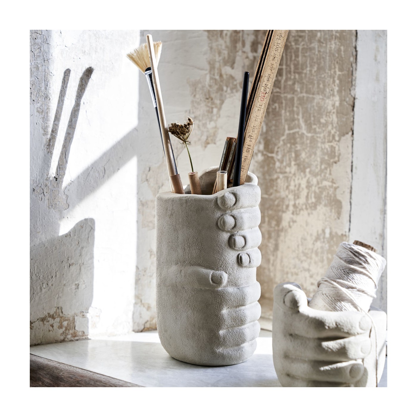 Fabriqué en faïence, Handy apporte une touche d'originalité à la décoration de votre bureau grâce à son motif fait main.