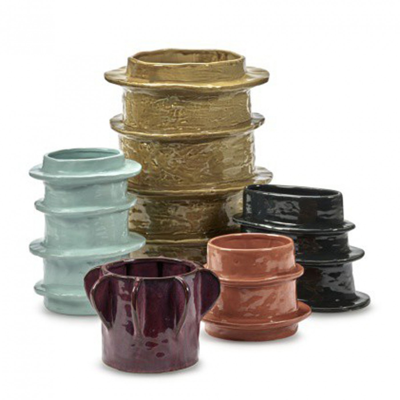 Avec le pot en grès Molly 06, Marie Michielssen traduit son esprit artistique en céramiques ludiques et expressives. Ce pot en faïence émaillée séduit par sa silhouette rythmée et ses reliefs superposés, qui créent un jeu subtil de lumière. Sa teinte douce met en valeur la matière et apporte de la profondeur à votre décor.