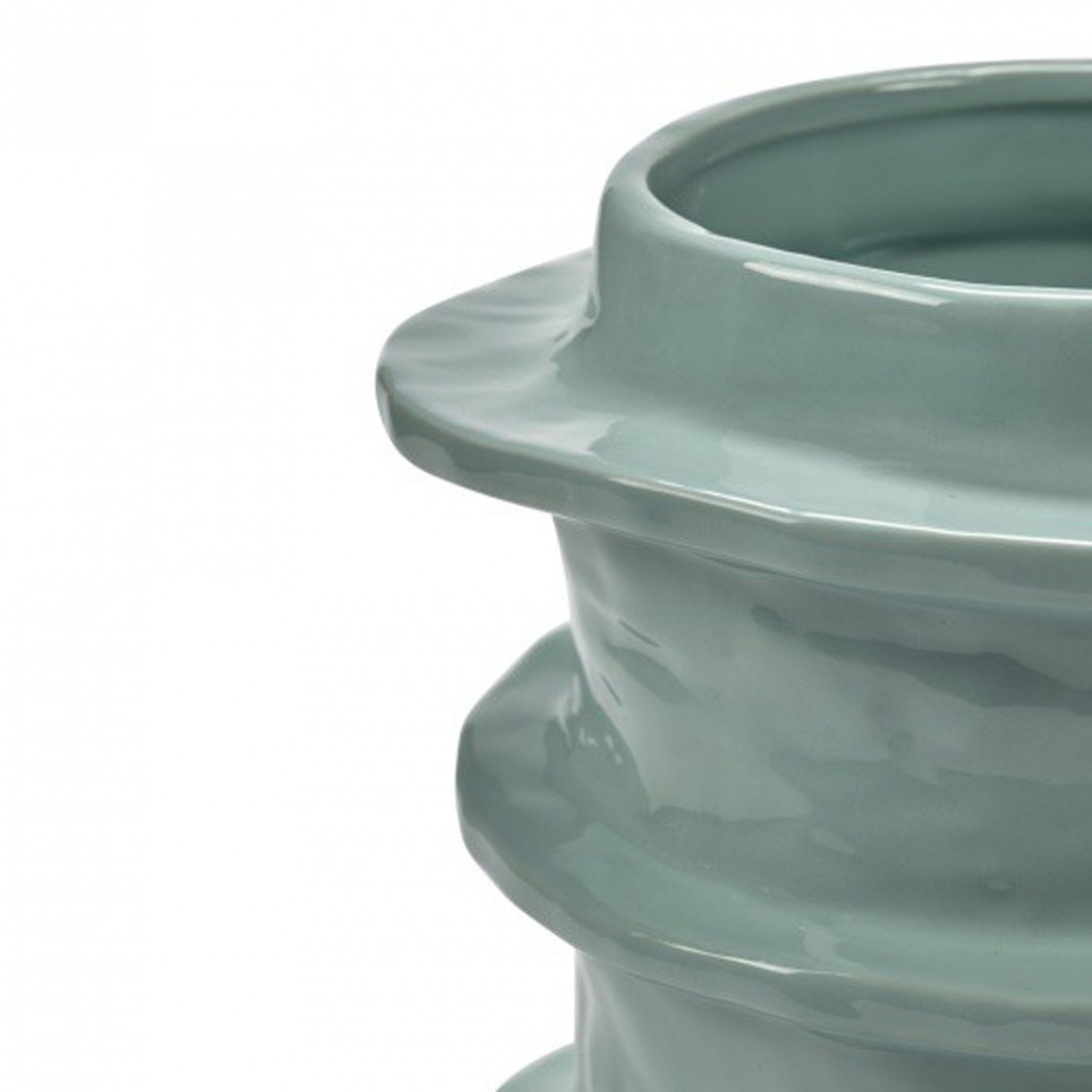 Avec le pot en grès Molly 03, Marie Michielssen traduit son esprit artistique en céramiques ludiques et expressives. Ce pot en faïence émaillée séduit par sa silhouette rythmée et ses reliefs superposés, qui créent un jeu subtil de lumière. Sa teinte douce met en valeur la matière et apporte de la profondeur à votre décor.