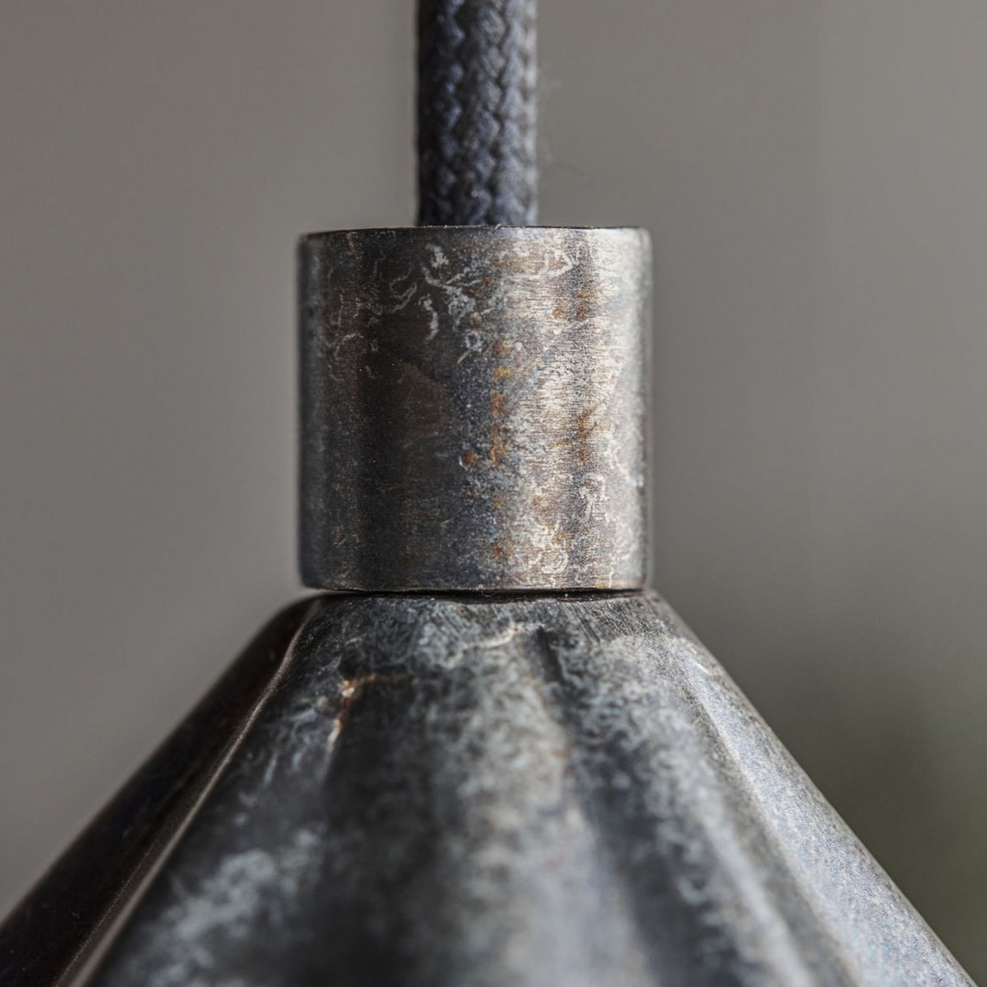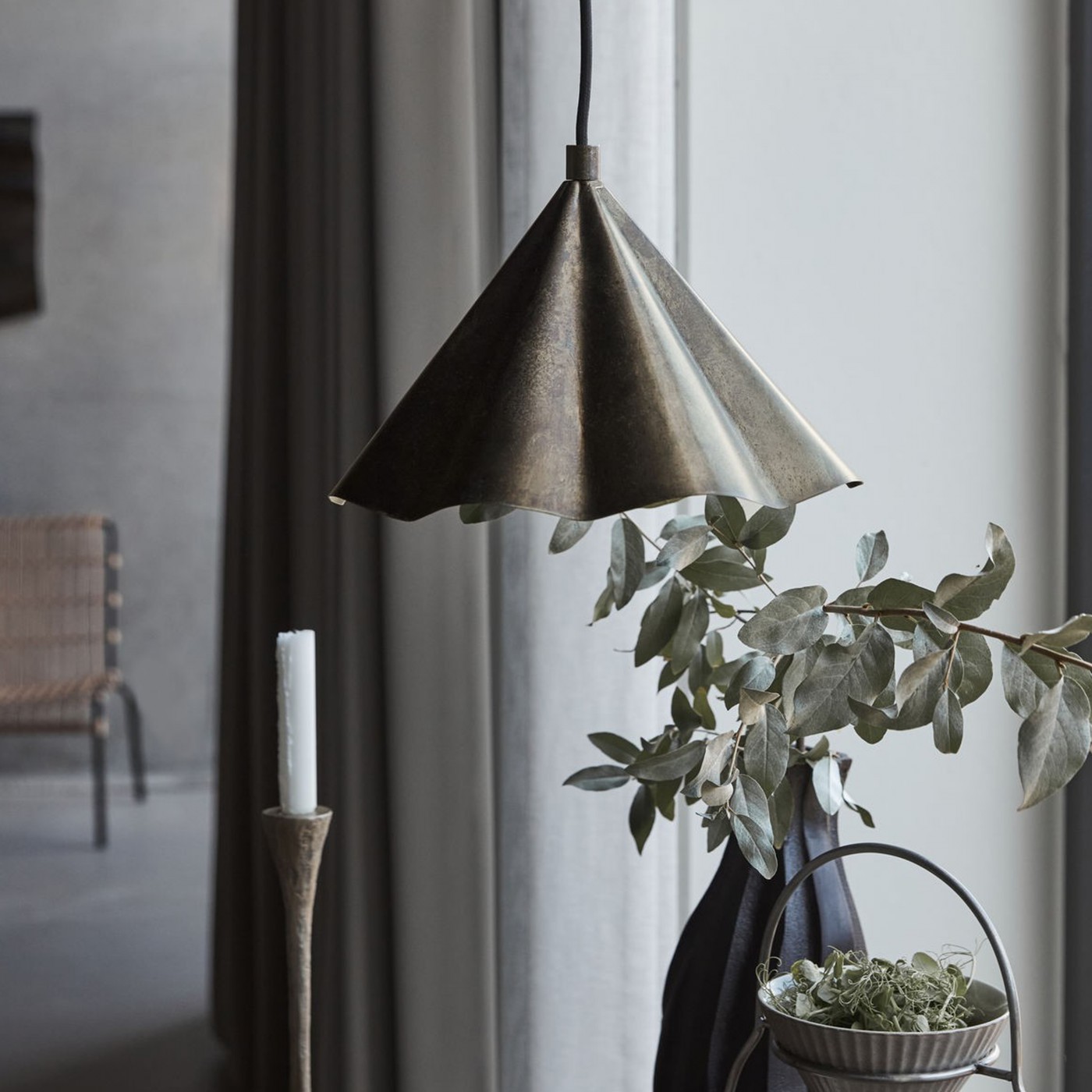 Sa finition industrielle est adoucie par la forme ondulée de l'abat-jour, créant un look d'imperfection parfaite.