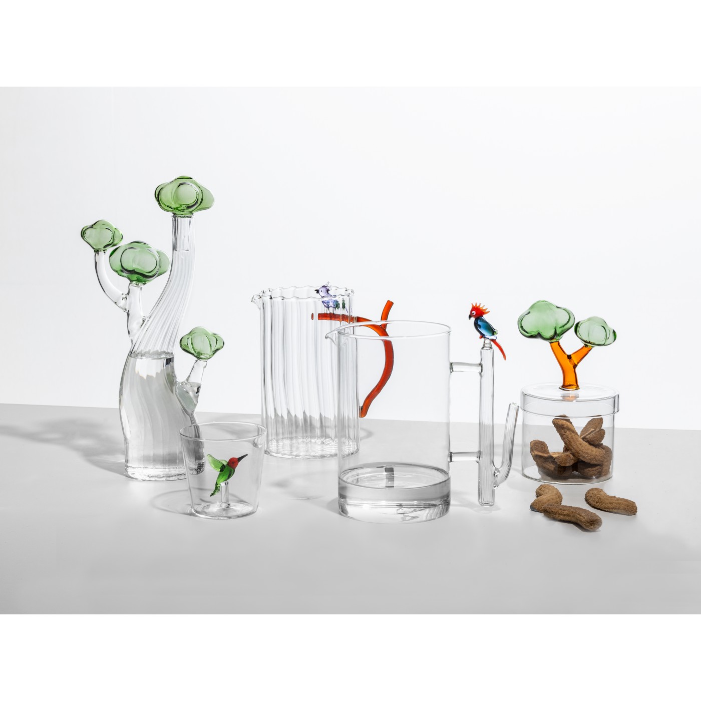 Découvrez la boîte bonbonnière de la collection Talking Trees, une invitation poétique au cœur d’une nature vivante et expressive. Oiseaux et arbres tropicaux prennent forme dans le verre soufflé, comme figés dans un instant de dialogue silencieux. Chaque pièce dévoile un décor miniature délicatement façonné, jouant avec la transparence et la lumière. À la fois décoratifs et raffinés, ces objets insufflent une énergie joyeuse et organique à votre table, mêlant savoir-faire artisanal et imagination contemporaine.