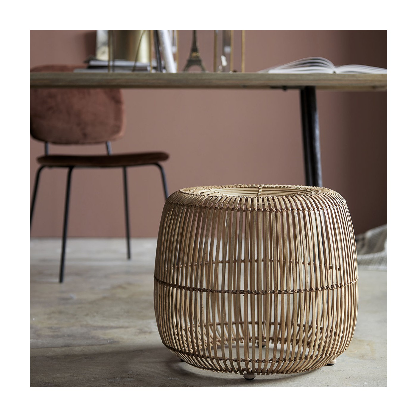 Le tabouret a un design simple et est livré avec de belles formes organiques en rotin tressé et en fer.