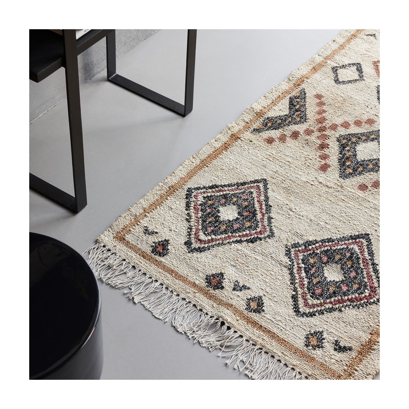 Fabriqué avec un mélange de jute et de coton, Kesh est idéal pour les zones très fréquentées comme l'espace de disposition des sièges ou votre couloir.