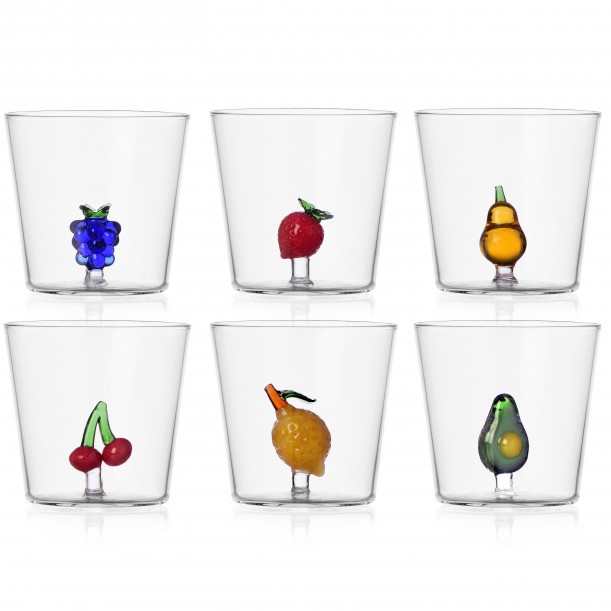 Le lot de 6 verres Fruit créé par Alessandra Baldereschi pour la marque de vaisselle italienne Ichendorf sera parfait si vous voulez jouer la carte de l'originalité, elle plaira à vos Petits et Grands Convives !