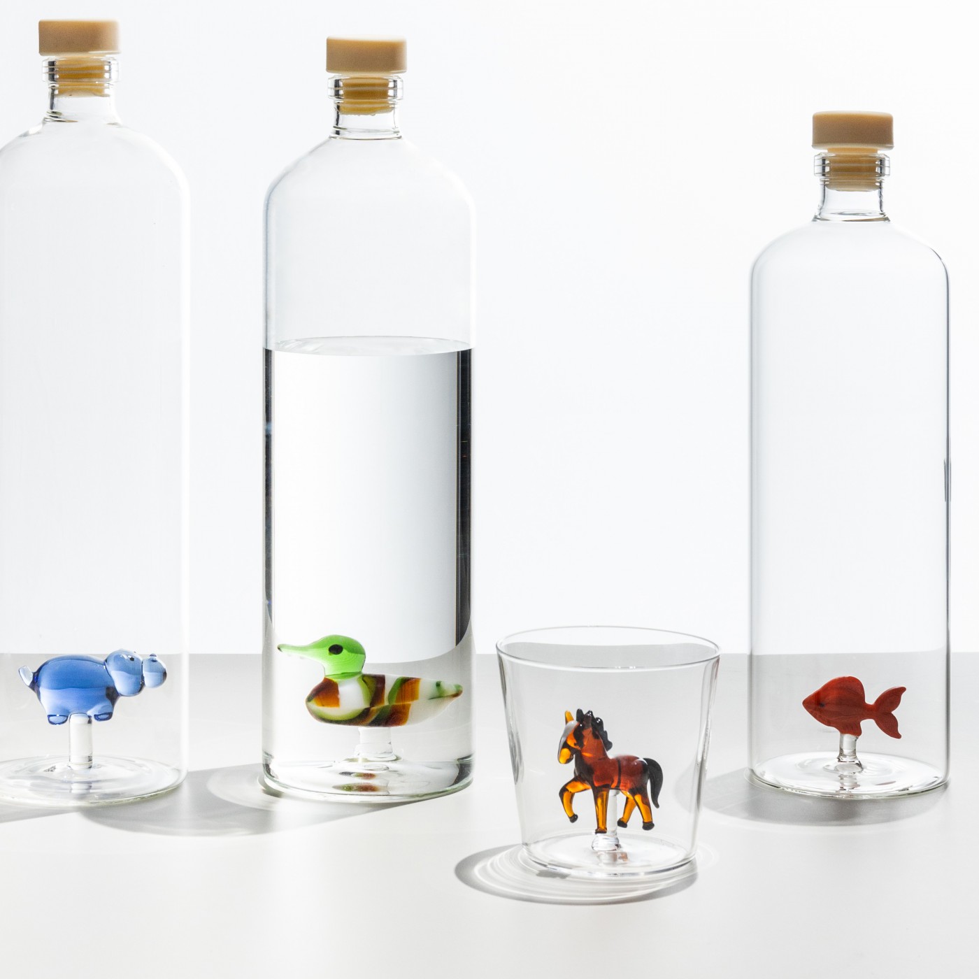 Apportez une note ludique et raffinée à votre table avec le lot de 4 verres de la collection Animal Farm d’Ichendorf Milano. Soufflés à la main, ils révèlent chacun une délicate sculpture en verre représentant un animal de la ferme : un cheval, un mouton, une oie et un coq.
