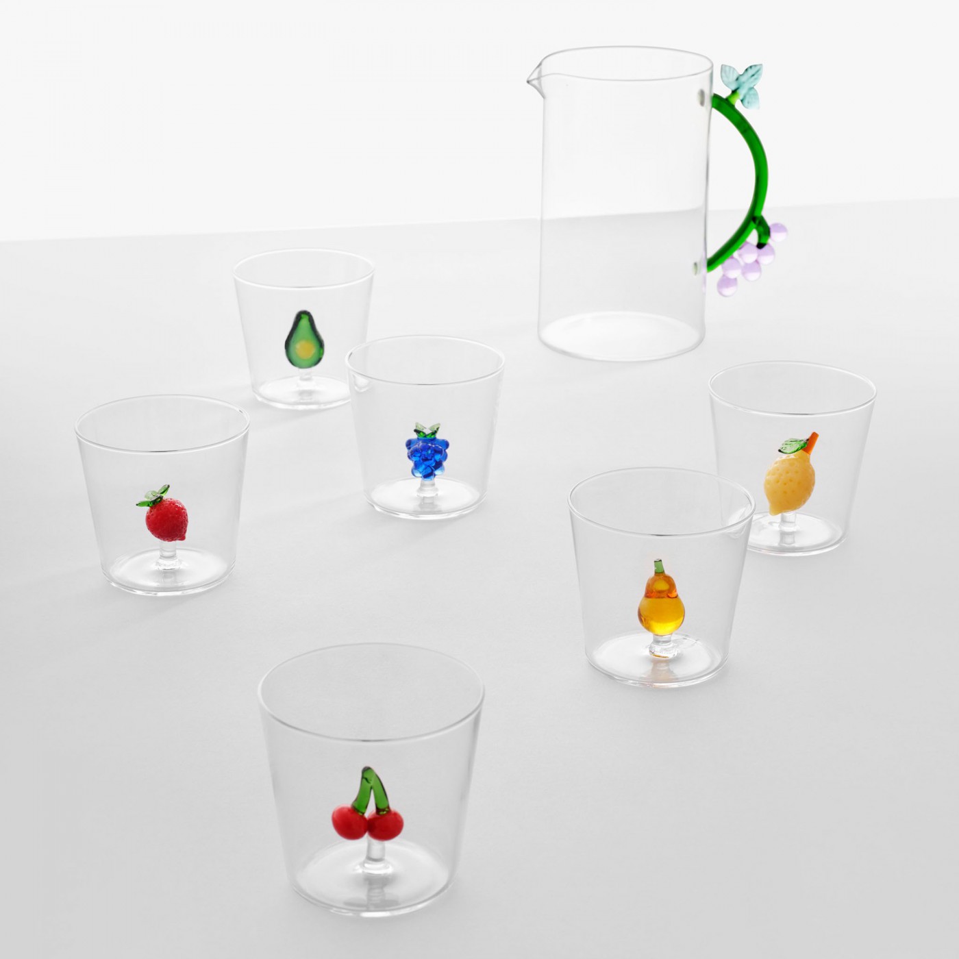 Invitez la poésie végétale à votre table avec le lot de 4 verres de la collection Fruits and Flowers d’Ichendorf Milano. Réalisés en verre soufflé à la main, ces verres révèlent en leur cœur de délicats petits fruits en verre coloré, véritables détails signature de la collection.